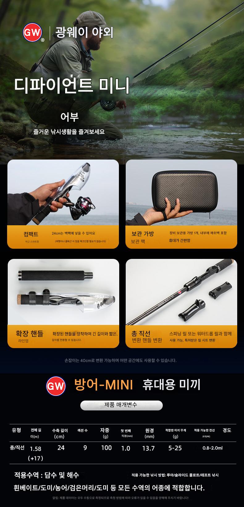 “광웨이 슈퍼 미니 루어 낚싯대 휴대용 여행용 포켓 낚싯대 ML 유니버설 건 핸들 스트레이트 핸들 슈트 텔레스코픽 디펜더”의 첫 상품평을 남겨 주세요