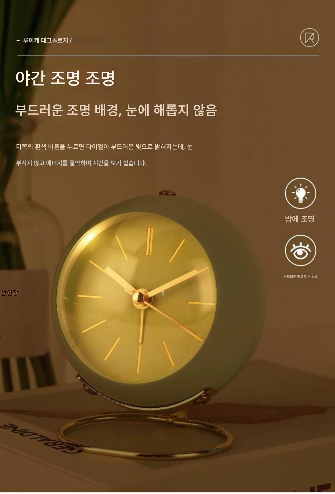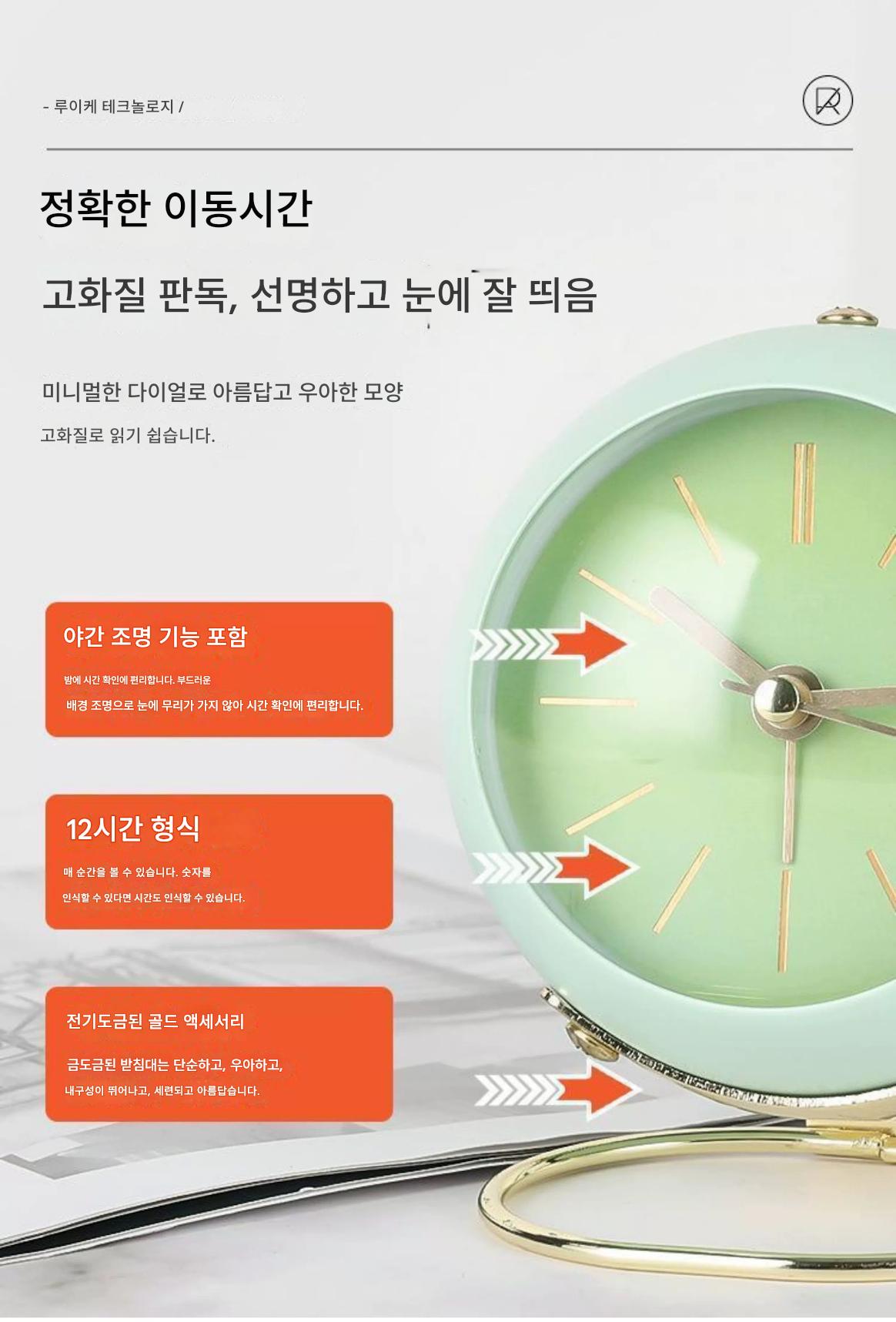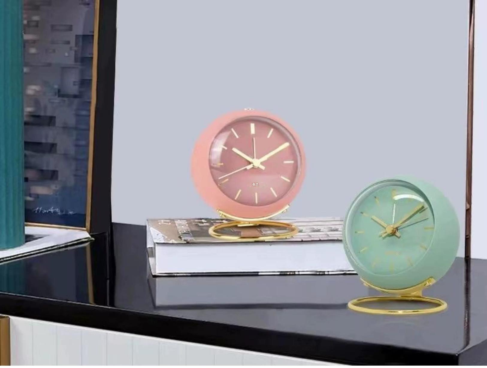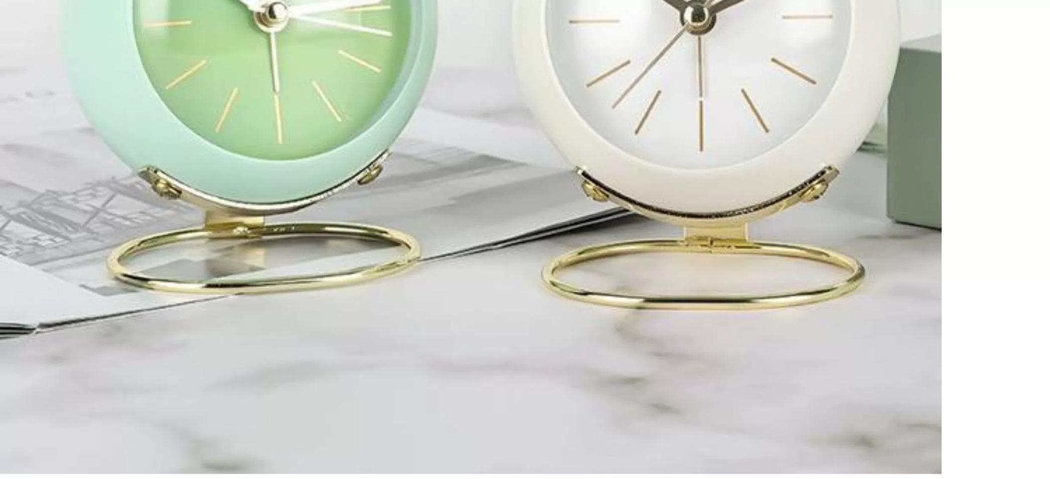 국경을 넘나드는 유럽식 데스크탑 금속 알람 시계 신중하게 선택된 심플하고 창의적인 시계 무음 야간 조명 전자 테이블 시계 장식품