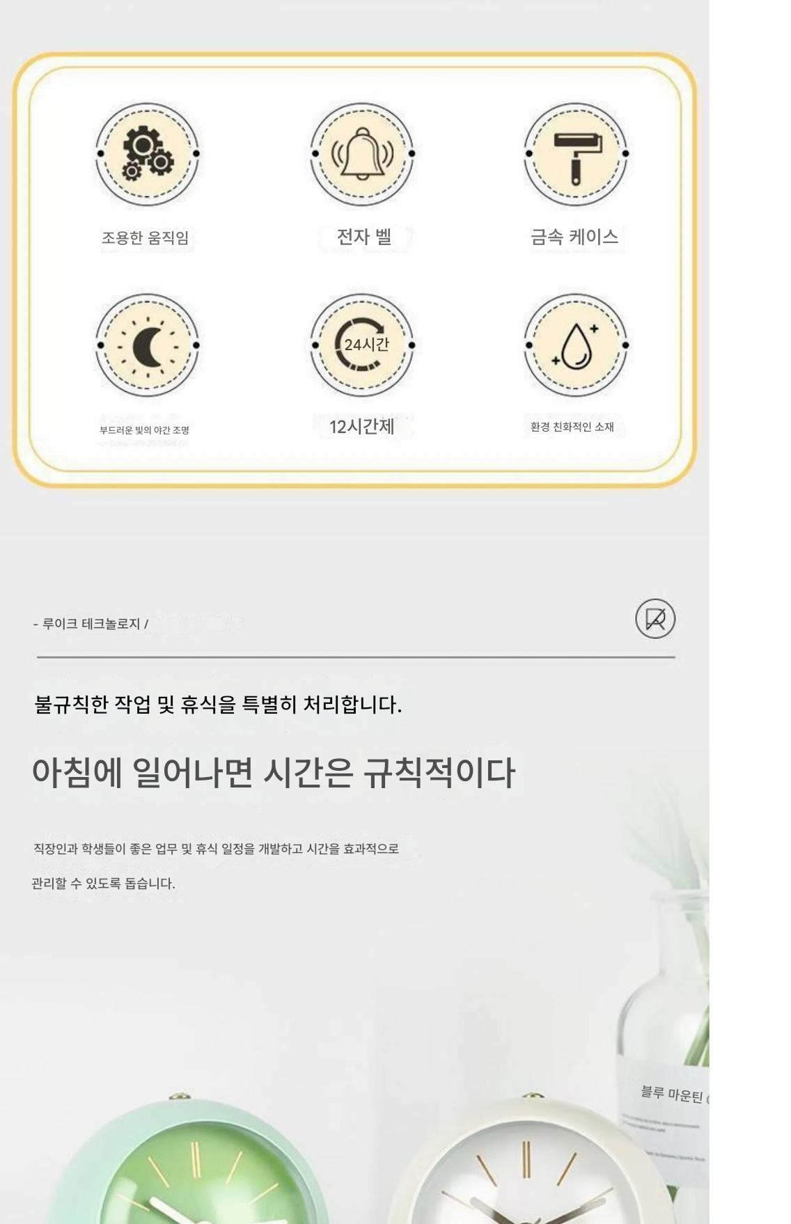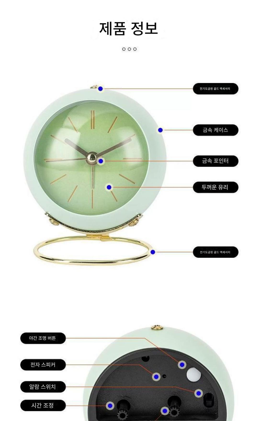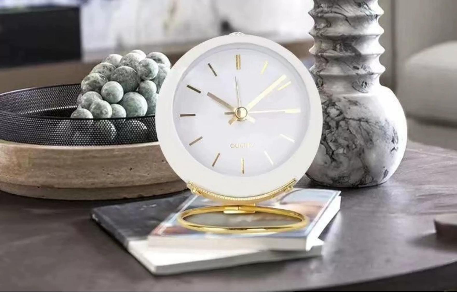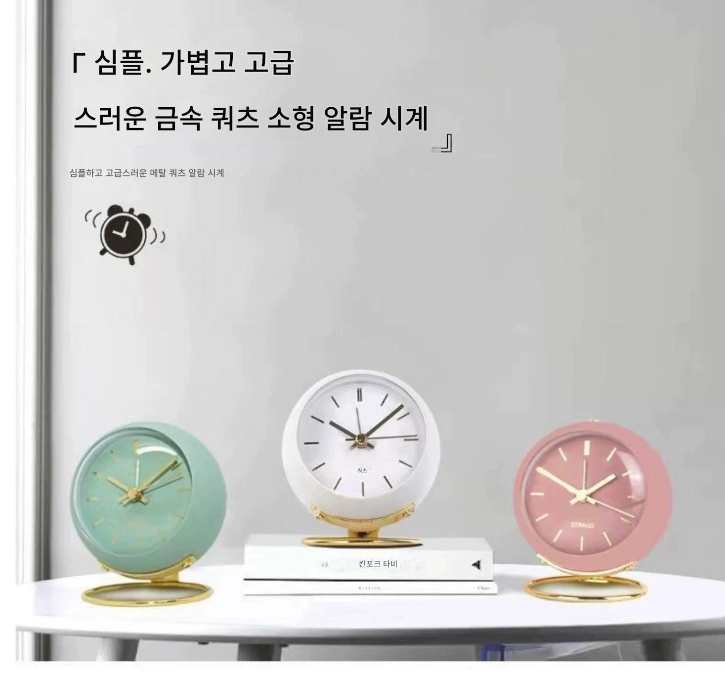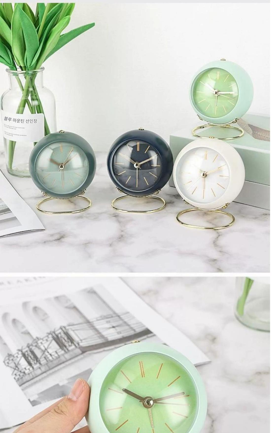 국경을 넘나드는 유럽식 데스크탑 금속 알람 시계 신중하게 선택된 심플하고 창의적인 시계 무음 야간 조명 전자 테이블 시계 장식품