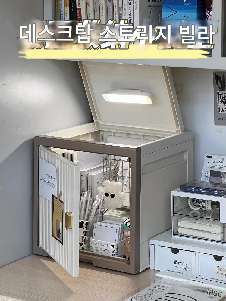 기숙사 데스크탑 수납 소형 빌라 학생 문구 수납함 커버 포함 방진 책 수납함
