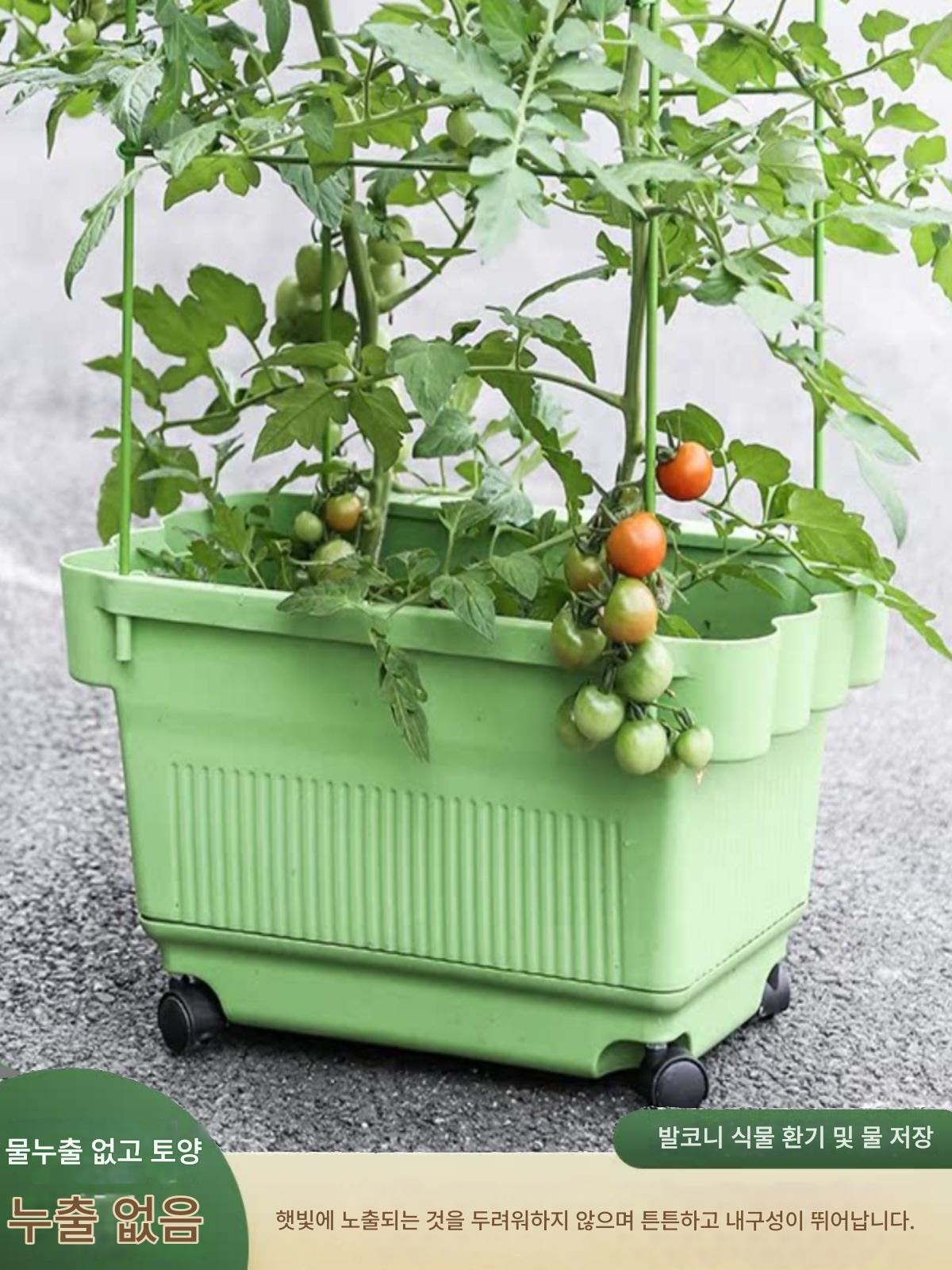 꽃상자 긴 직사각형 자체흡수 발코니 가정용 바퀴 달린 트레이 플라스틱 초대형 통기성 수지 야채 화분