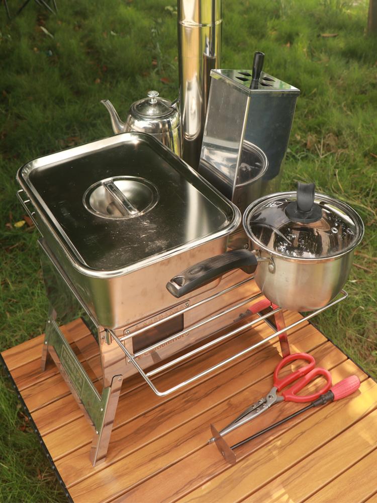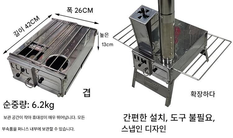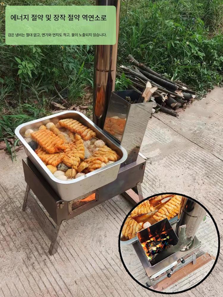 나무 난로 야외 휴대용 난로 접이식 역연소 가스화 캠핑 텐트 난방 바베큐 고기 가정용 나무 난로