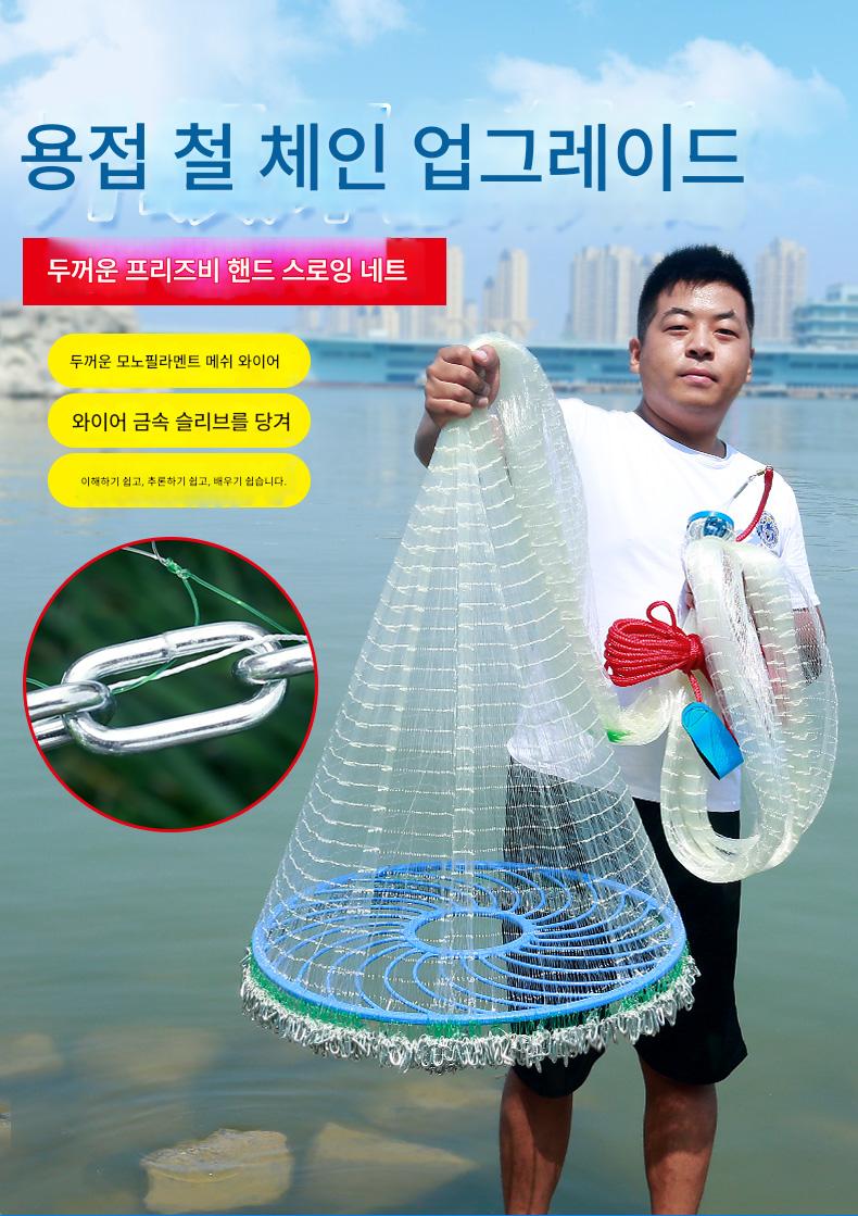 낚싯그물 손 던지기 낚싯그물 대형 프리즈비 스타일 디스크 손 던지기 낚싯그물 쉽게 던지고 물고기를 잡는 그물