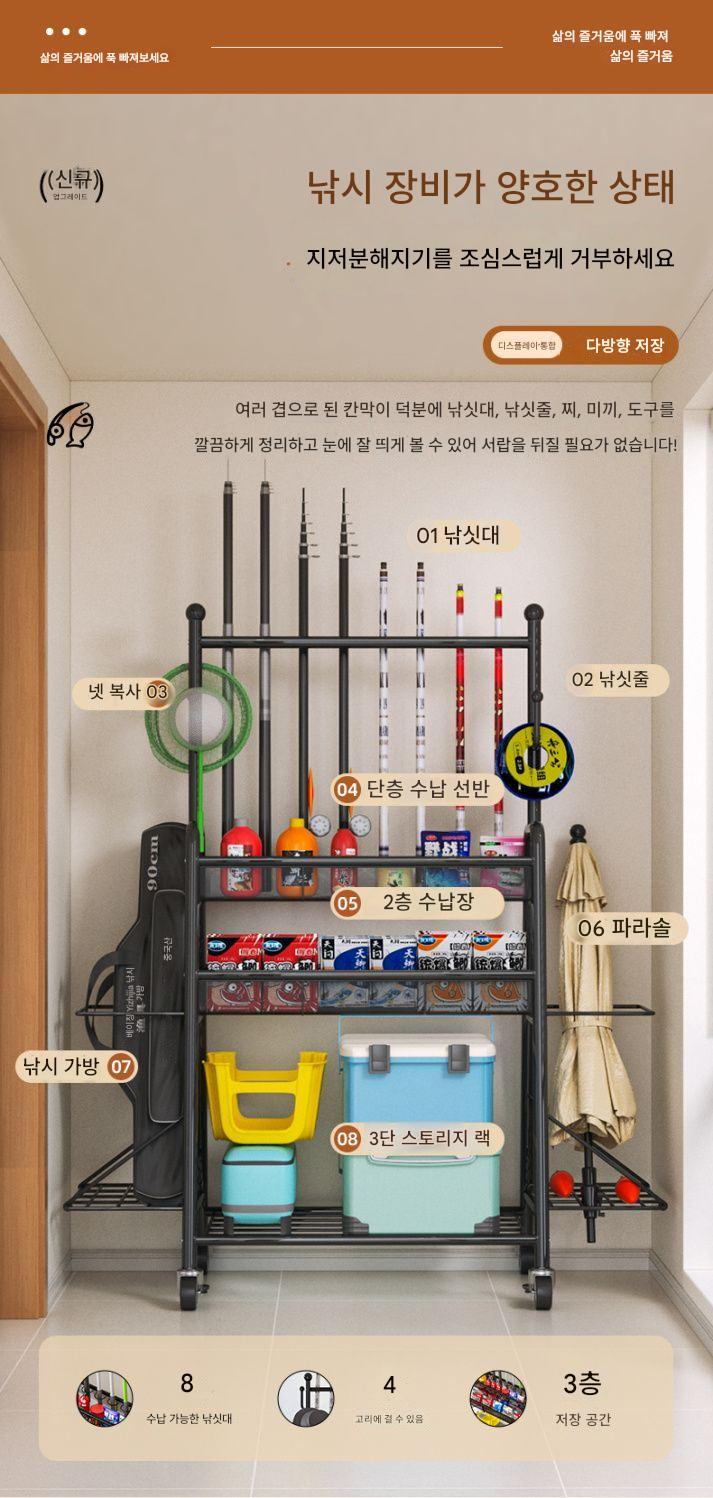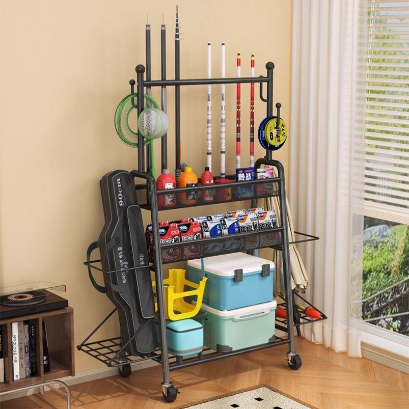 낚싯대 보관대 바닥 이동형 카트 보관 낚시 상자 낚시 의자 낚시 우산 다기능 디스플레이 랙 낚시 장비