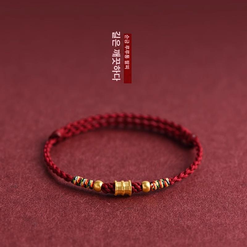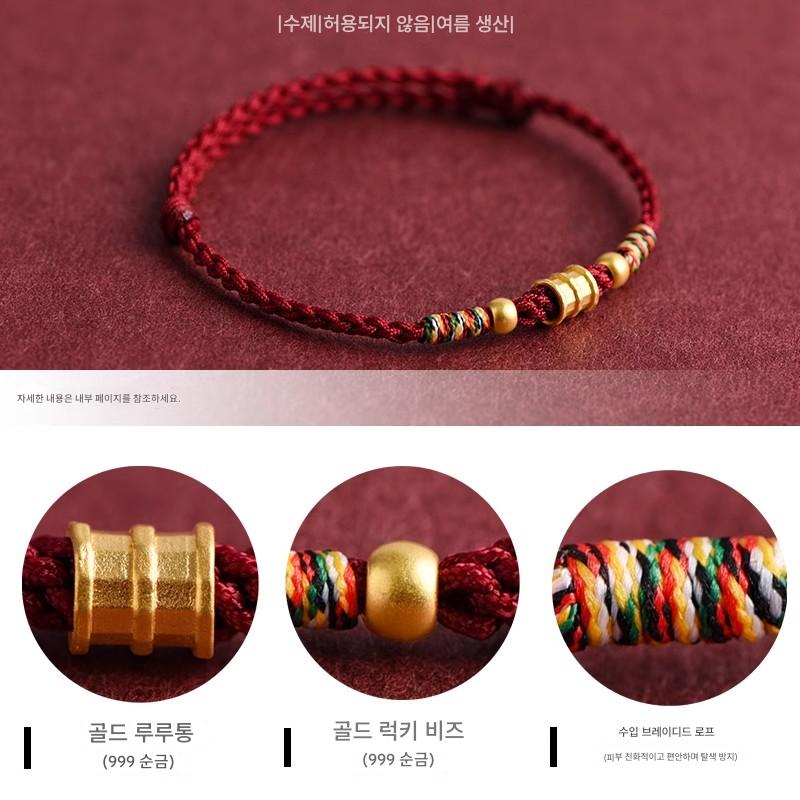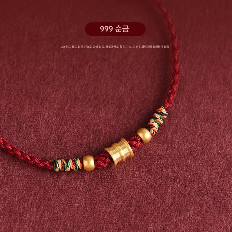 남녀 공용 푸퉈산 999 골드 올라운드 레드 스트링 팔찌, 뱀 탄생 연도, 안전 행운 구슬 땋은 팔찌