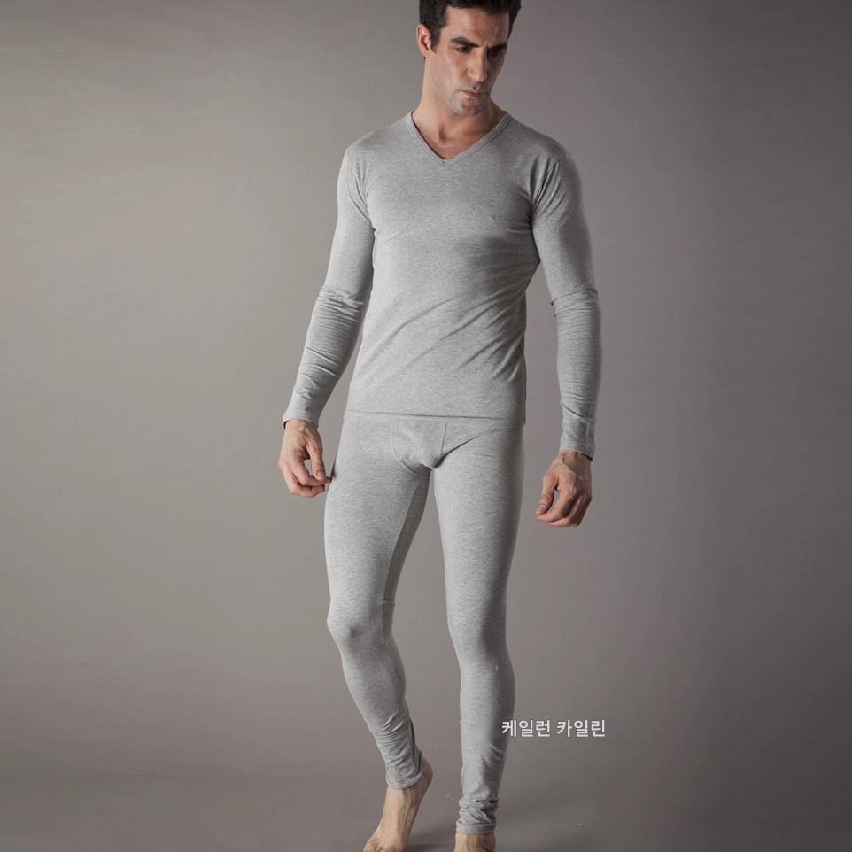 남성용 모달 써멀 속옷 세트, 겨울 V넥, 얇은 순면 써멀 속옷, 흰색 면 스웨터