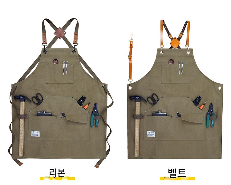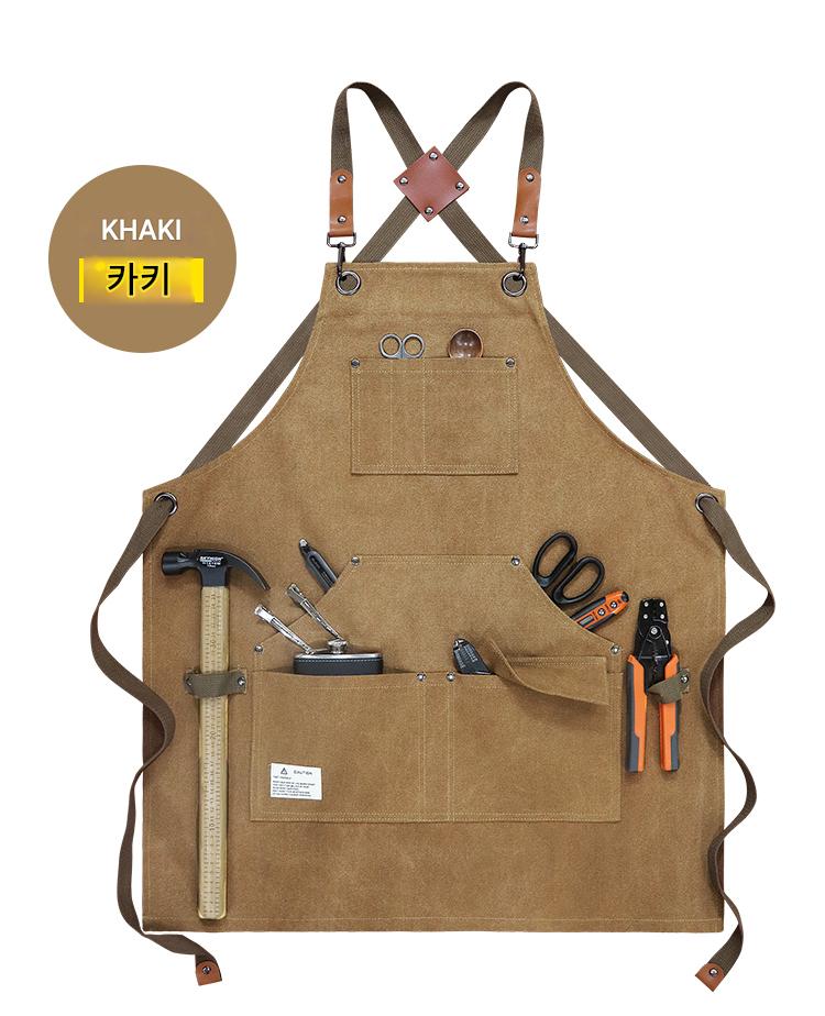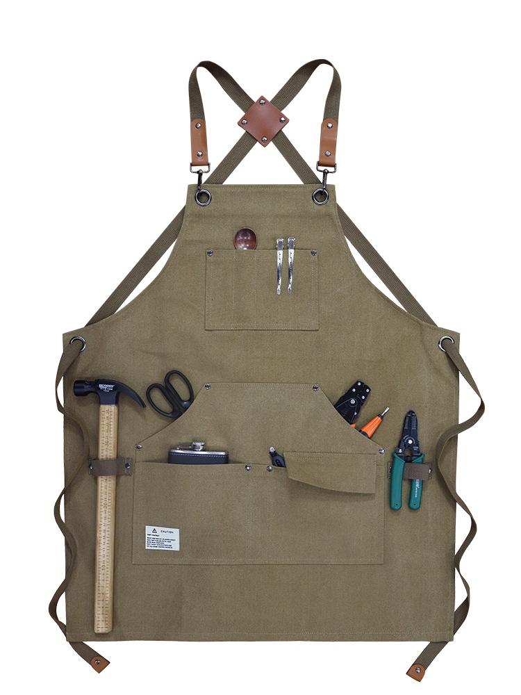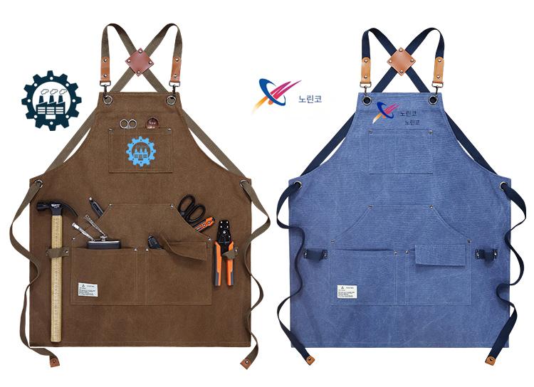 남성용 유럽 및 미국 스타일 앞치마 두꺼운 캔버스 내마모성 및 방수 맞춤 로고 정원사 핸드메이드 세련된 데님 작업복