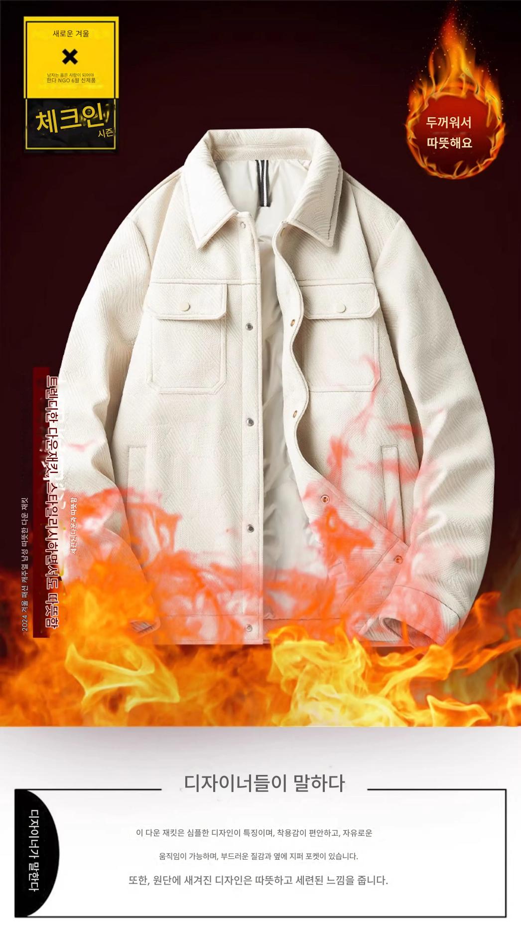 남성 다운 재킷, 가을/겨울 2025 신상품, 두꺼운 셔츠, 겨울 상의, 트렌디하고 멋진 라펠 작업복 재킷