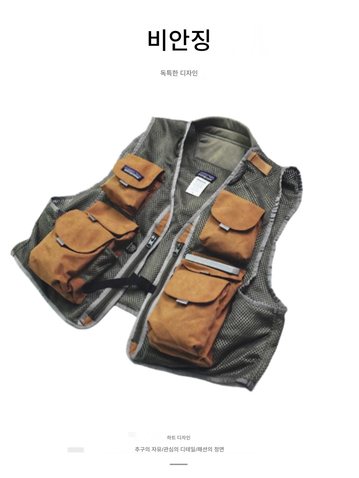 남성 및 여성용 미국 레트로 기능성 작업복 낚시 조끼 느슨한 통기성 스플라이싱 메시 다중 포켓 남성용 야외 재킷