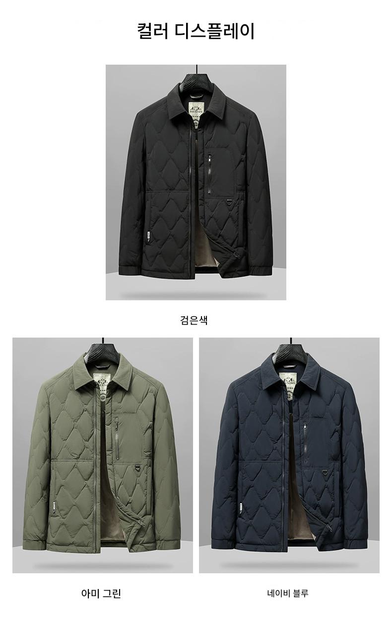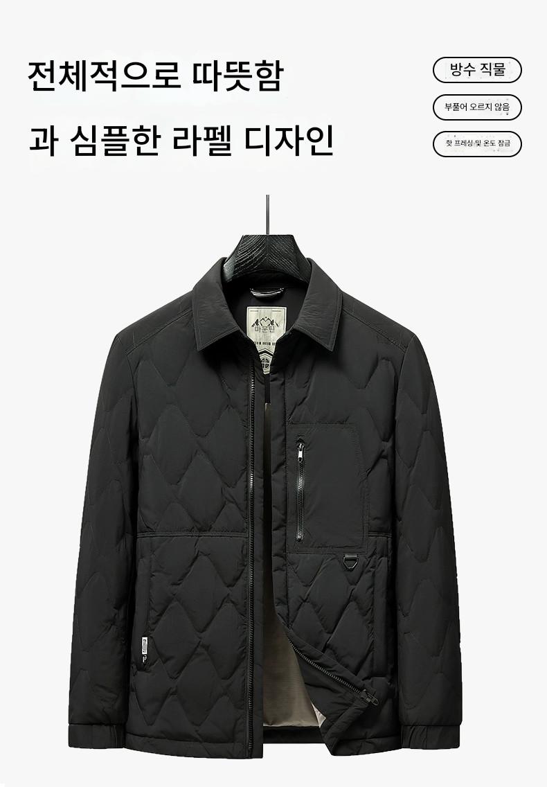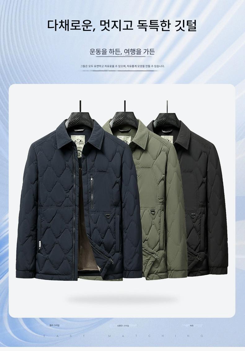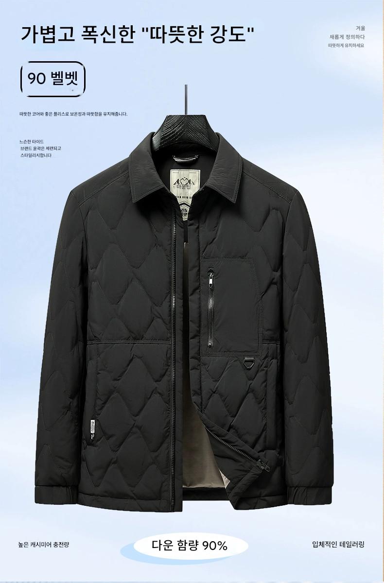 남성 2025년 겨울 신상 캐주얼 경량 화이트 덕다운 따뜻한 코트 (셔츠 스타일 칼라)