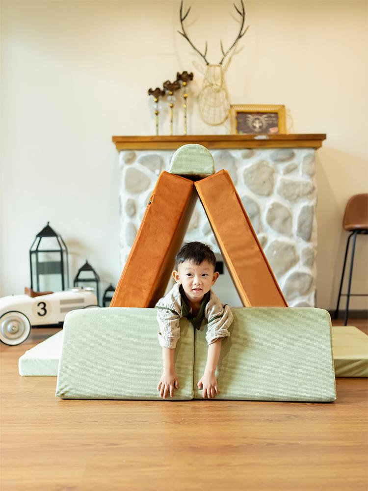 草绿色-晨雾之森 德国绒 > 厚垫1个+薄垫1个+三角枕2个+扶手2个+滑梯一个(80cm*160cm)
