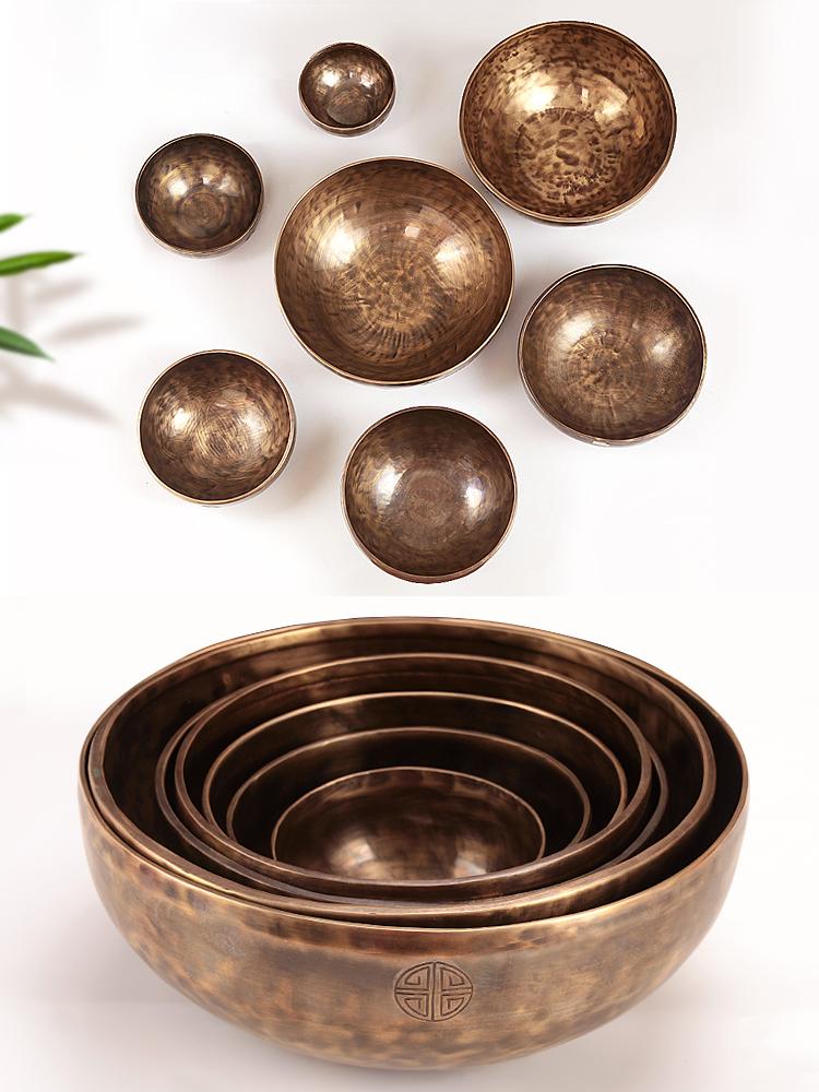 네팔 노래 그릇 치유 도구 보름달 그릇 악기 수제 순수 구리 산타 노래 그릇 요가 7종 세트