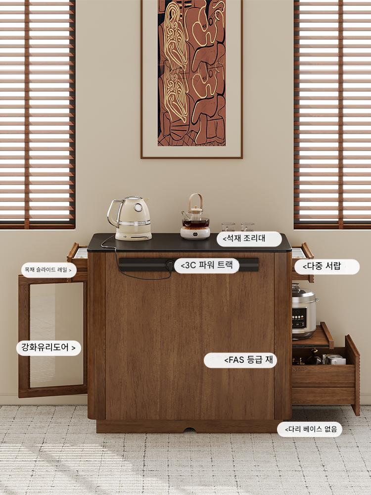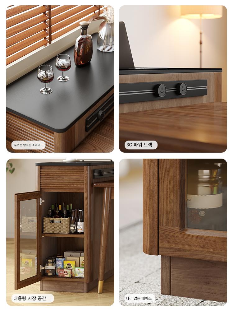 노르딕 솔리드 우드 아일랜드 테이블 식탁 통합 다기능 소형 아파트 신 중국식 홈 거실 록 플레이트 바 티 캐비닛