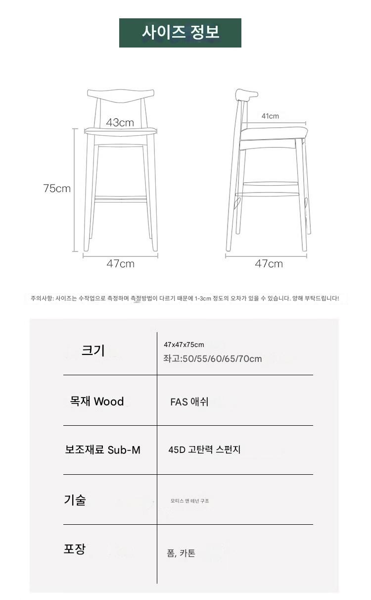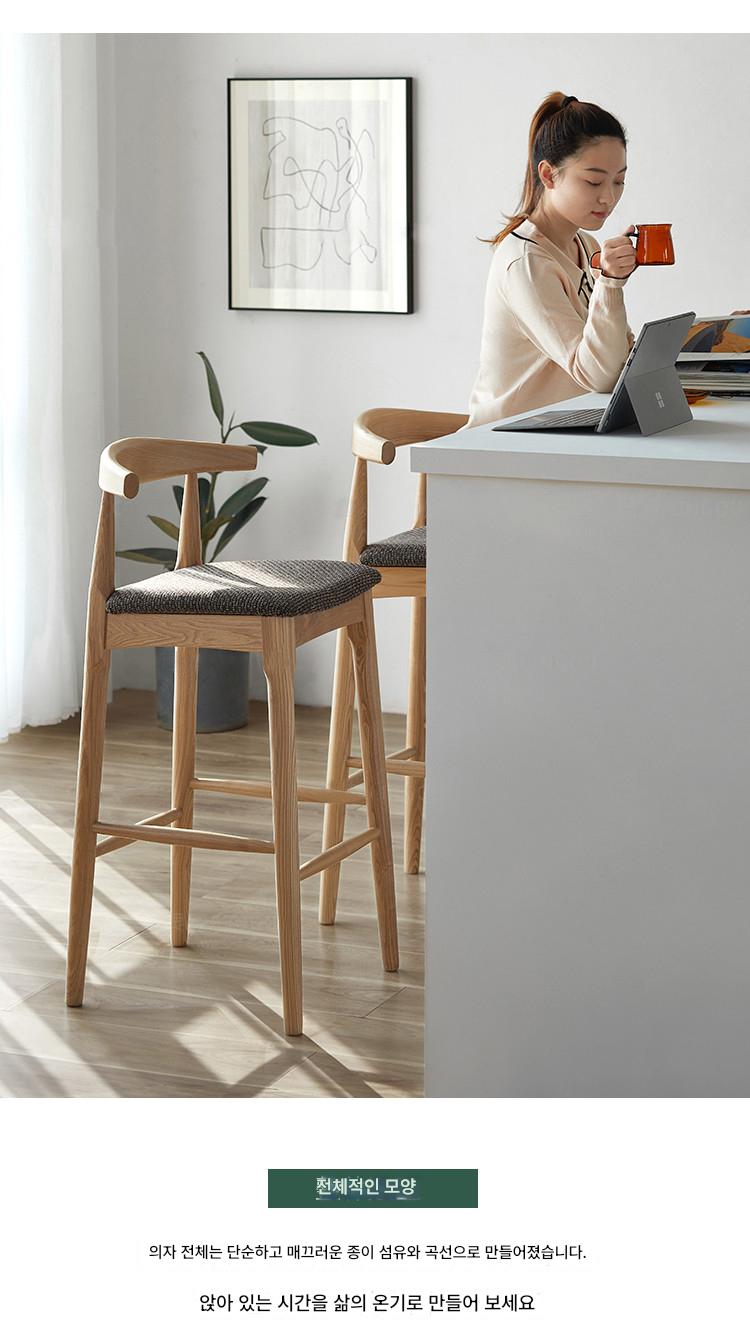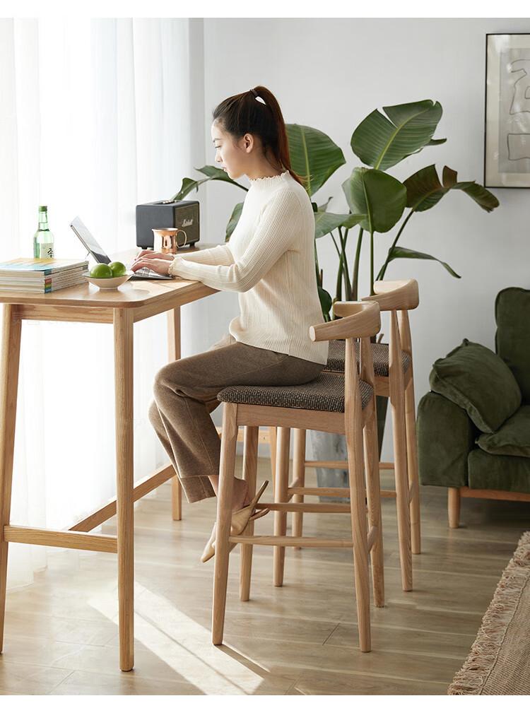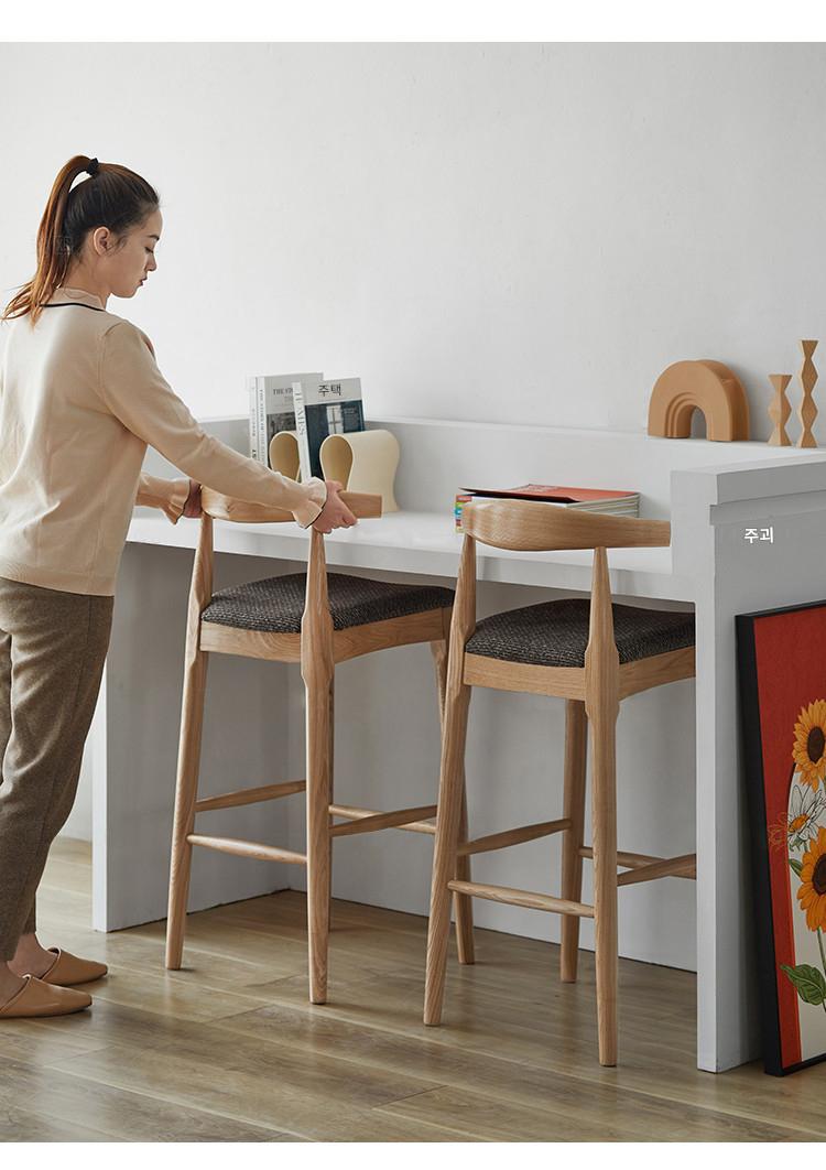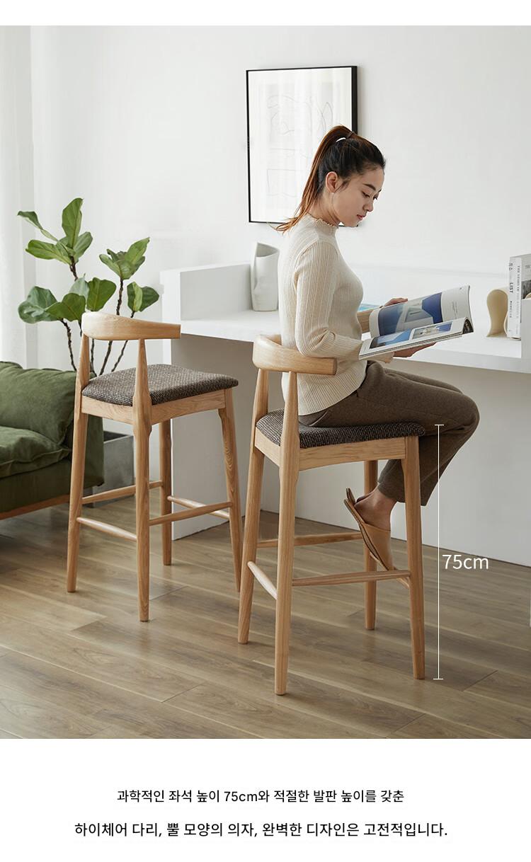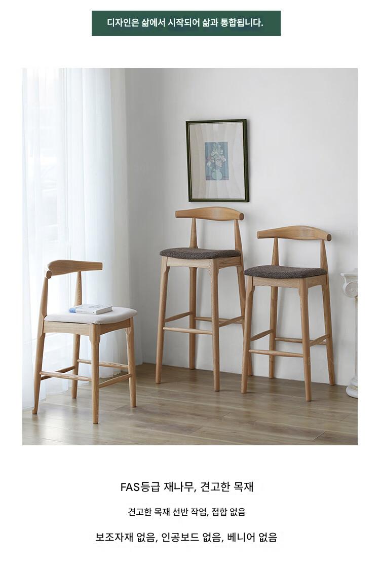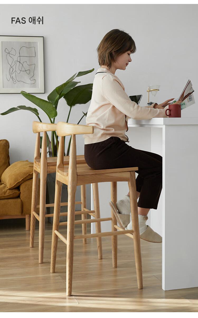 노르딕 애쉬 우드 솔리드 우드 호른 바 체어 홈 모던 심플 백레스트 하이 스툴 체어 바 바 스툴