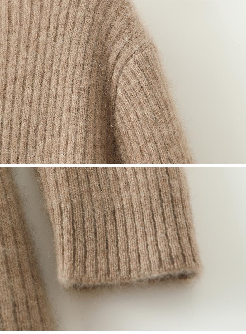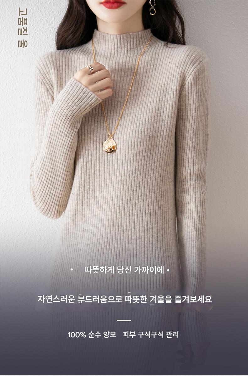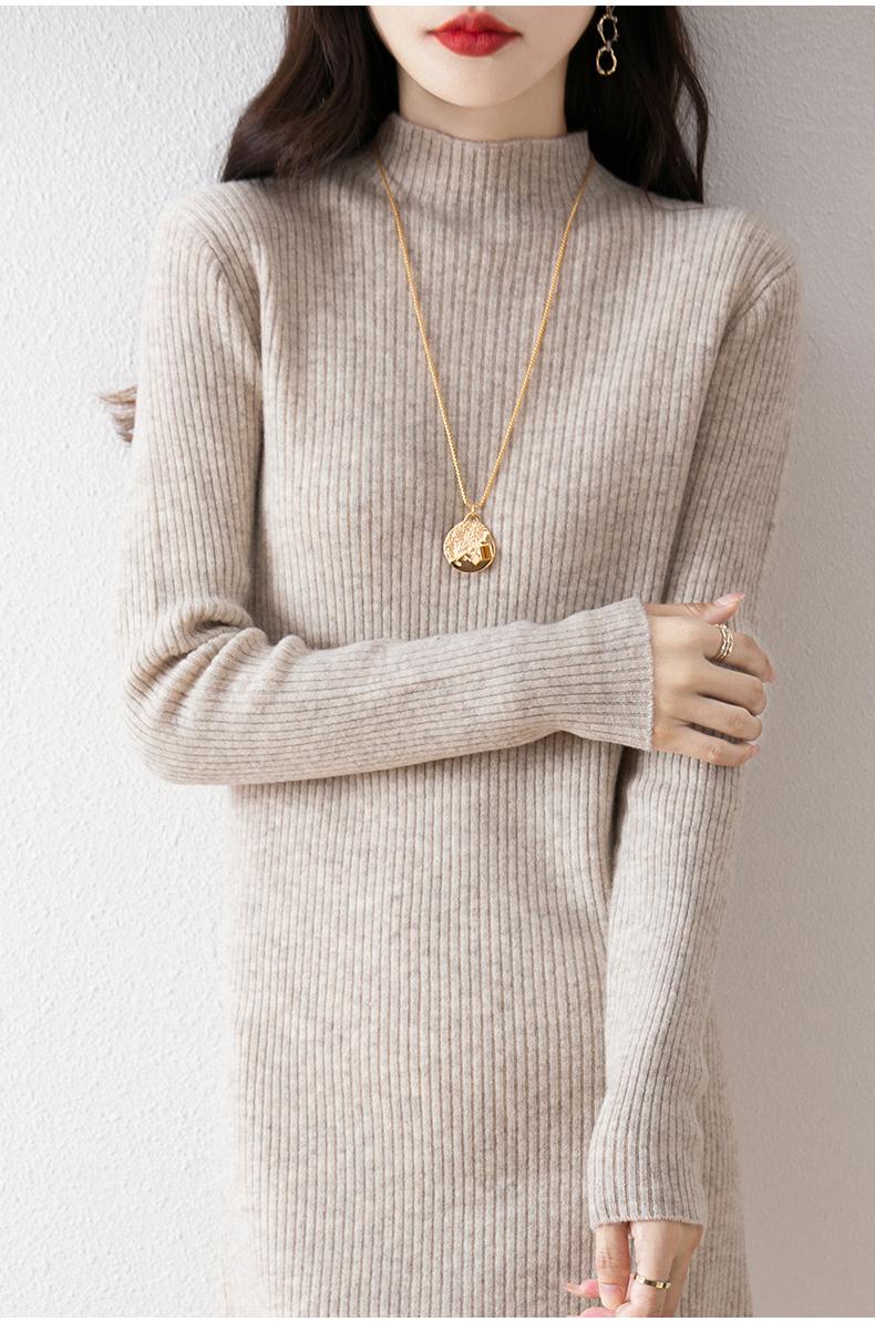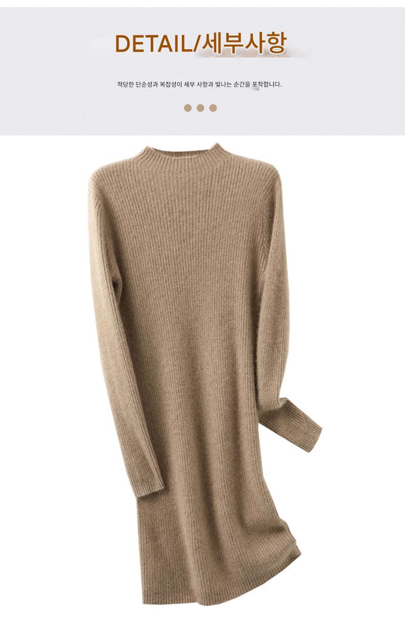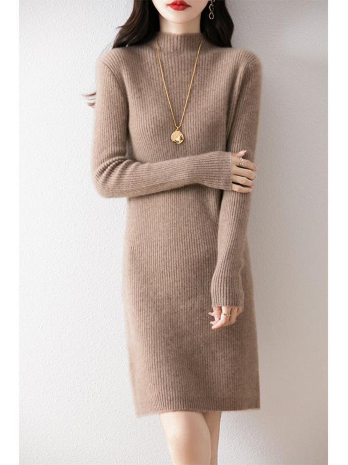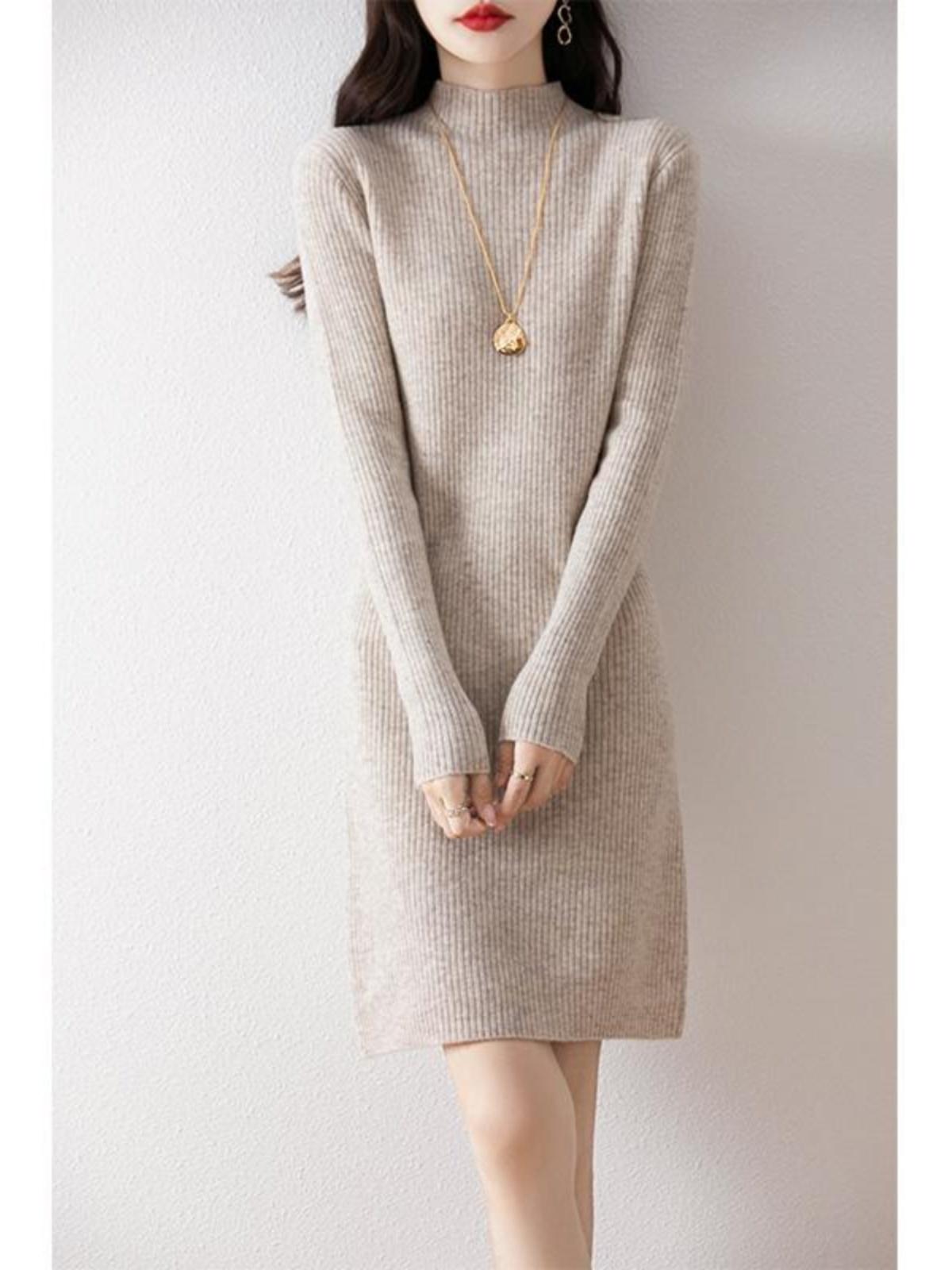 니트 원피스, 부드럽고 몸에 꼭 맞는 스웨터, 중간 길이, 반 높이 칼라, 여성용 100% 순수 울 힙 스커트
