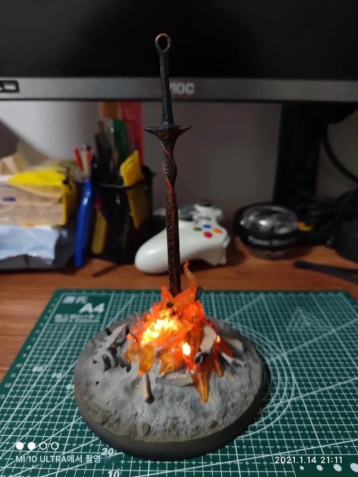 다크소울스 국내 고품질 버전 빛나는 불꽃 빛나는 검 모닥불 게임 주변 모델 손