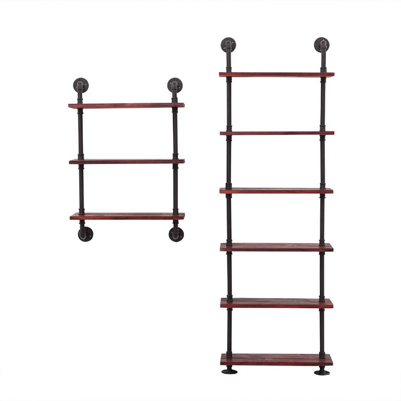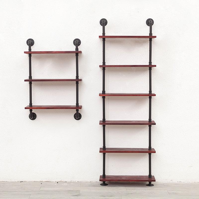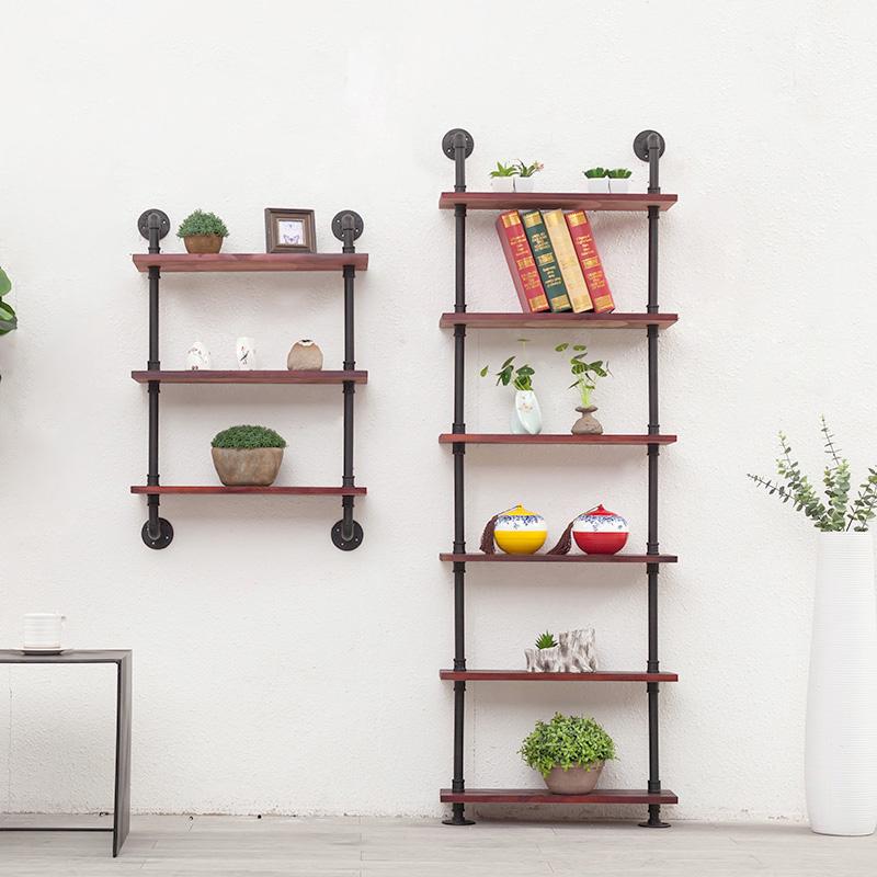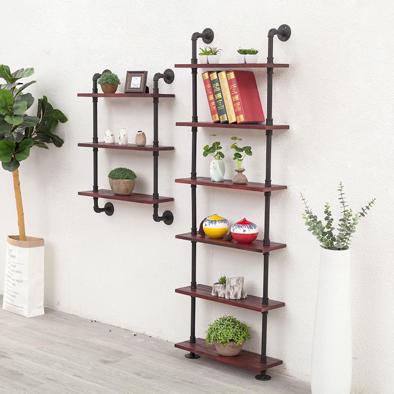 단철 사다리꼴 다층 레트로 물 파이프 벽걸이 선반 단어 분할 선반 거실 창의적 장식 견고한 나무 책장