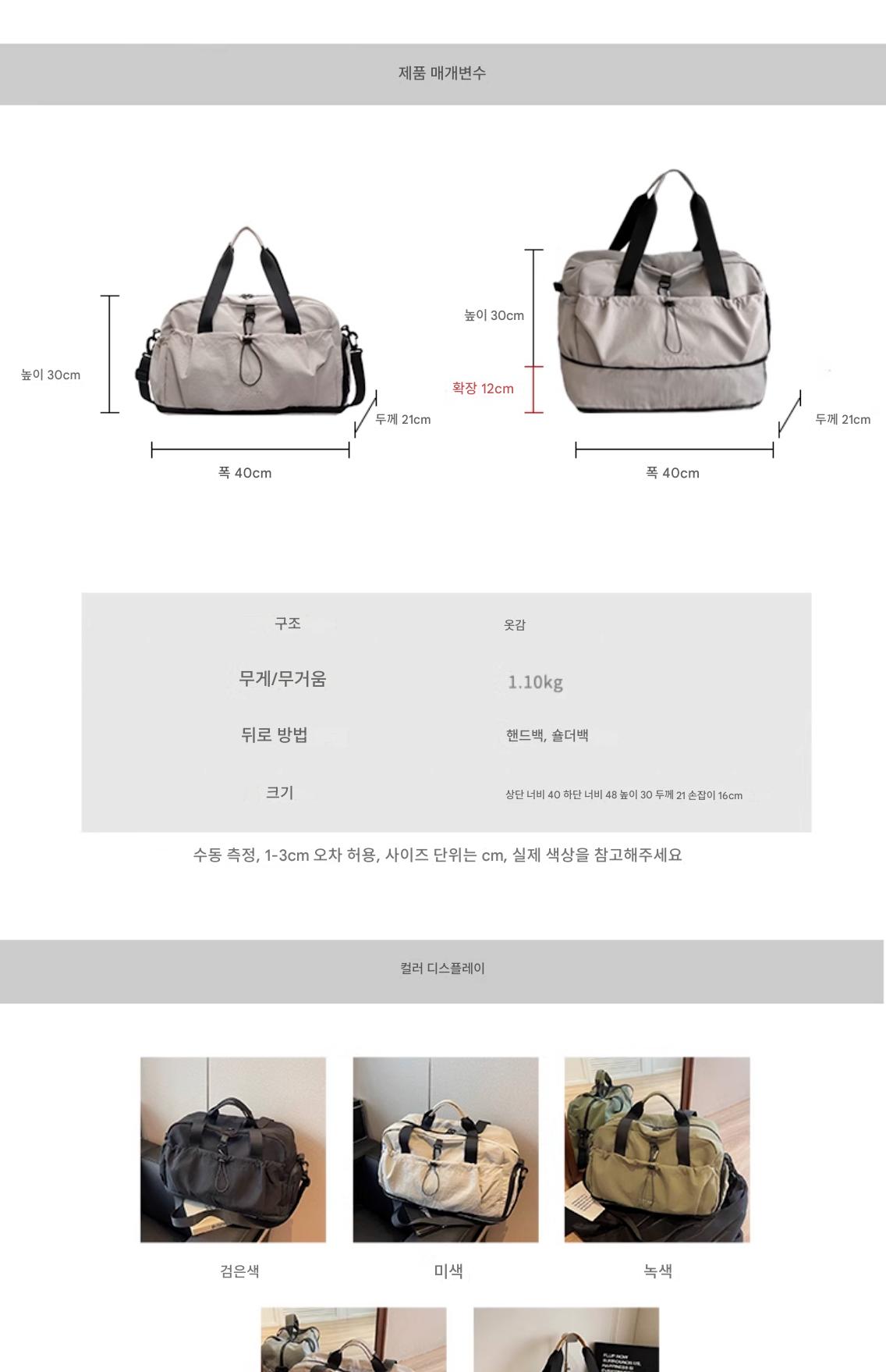 녹색 확장 용량, 회색 확장 용량, 베이지색 확장 용량, 카키 확장 용량, 블랙 확장 용량