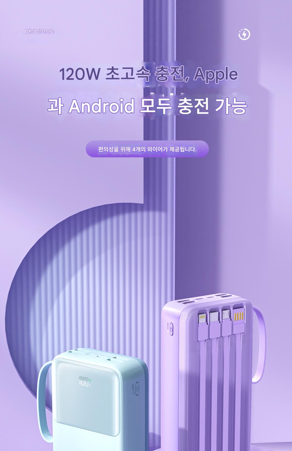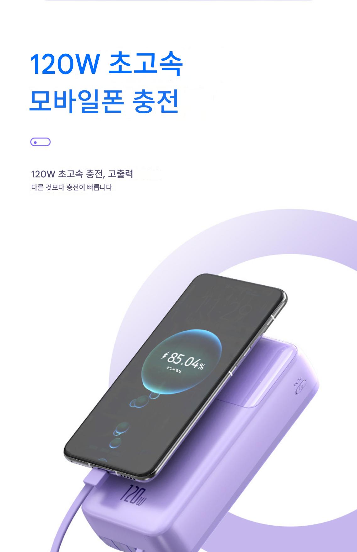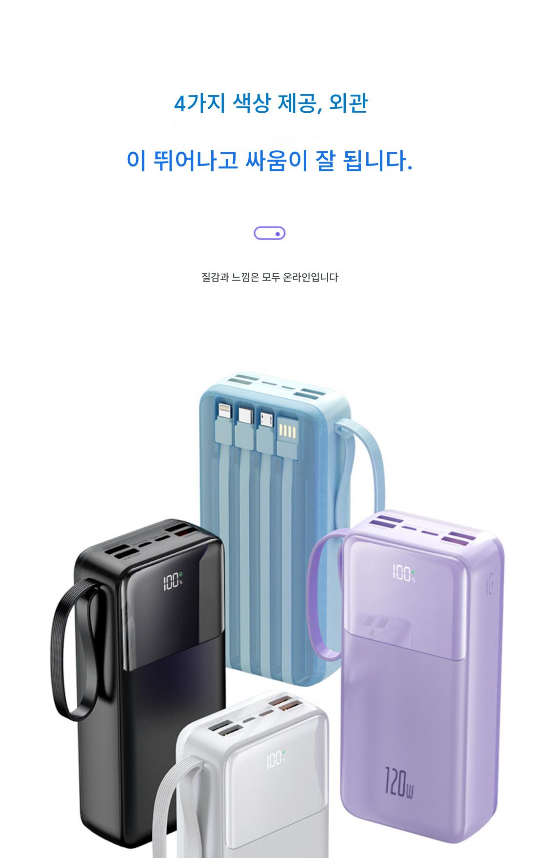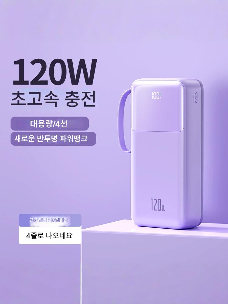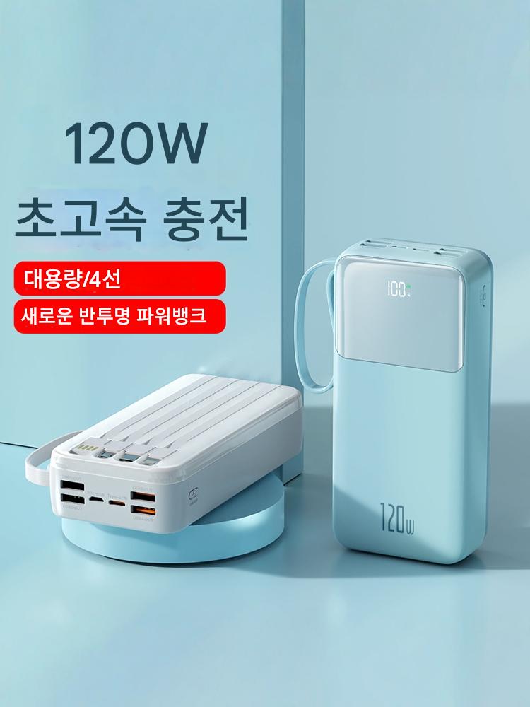 대용량 5W mAh 내장 케이블 120W 초고속 충전 3종 일체형 파워뱅크 캠핑 야외 생중계용