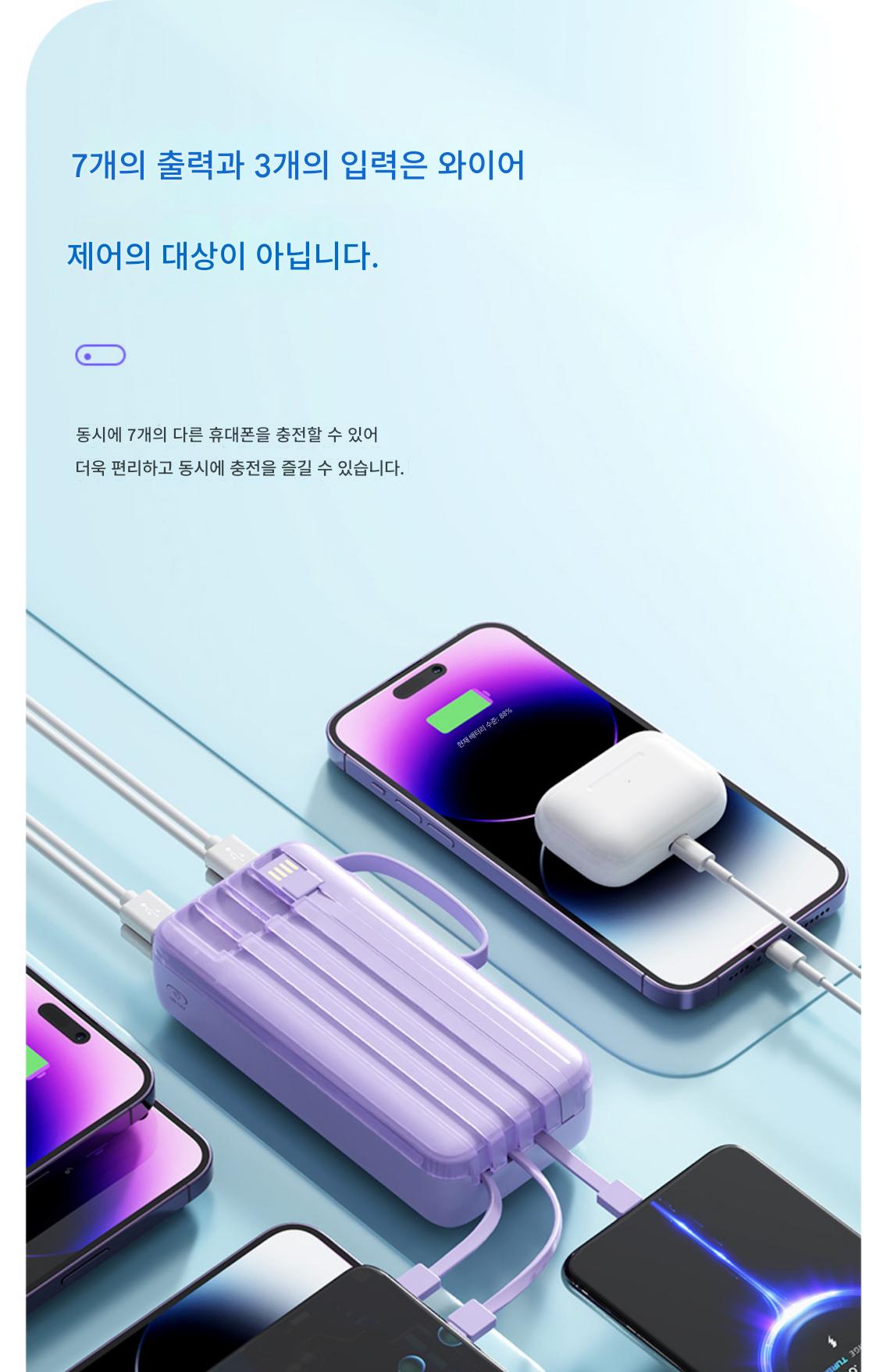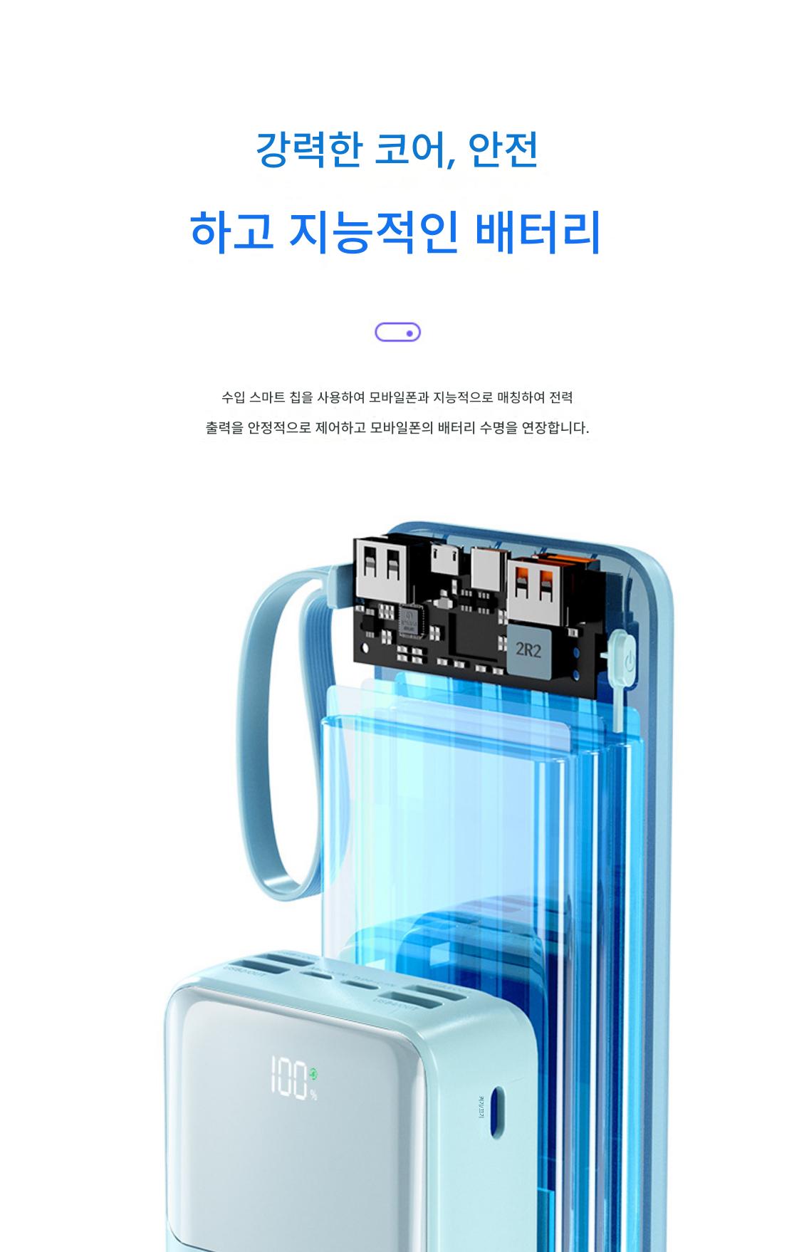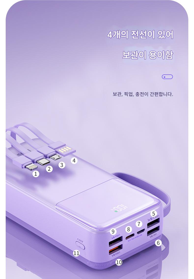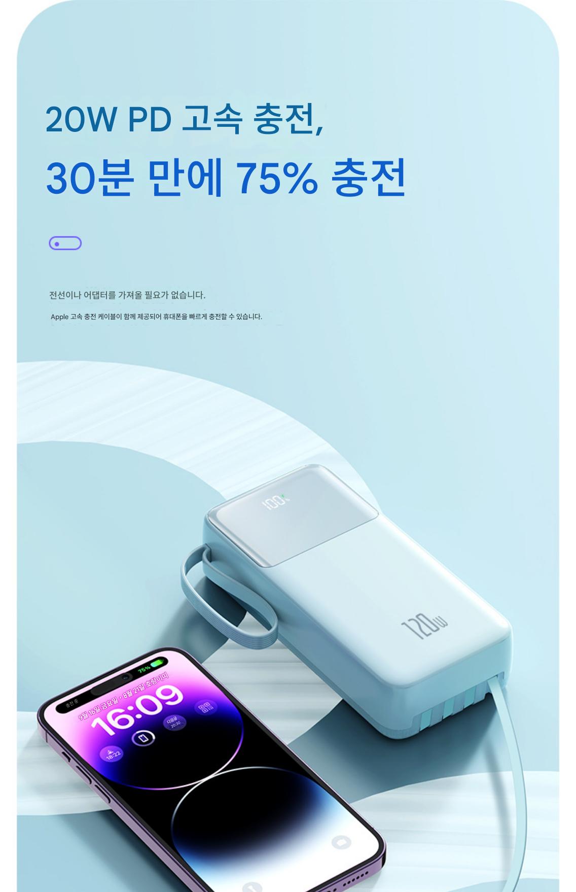 대용량 5W mAh 내장 케이블 120W 초고속 충전 3종 일체형 파워뱅크 캠핑 야외 생중계용
