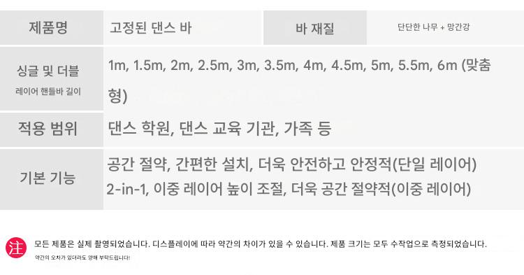 댄스바 벽걸이형 다리 스트레칭 바 운동실 2중 고정형 교실 홈 전문가용 어린이용 리프트 바