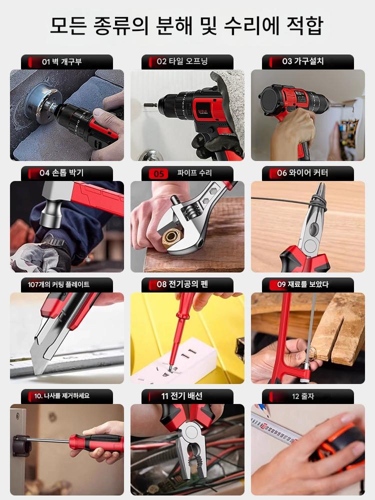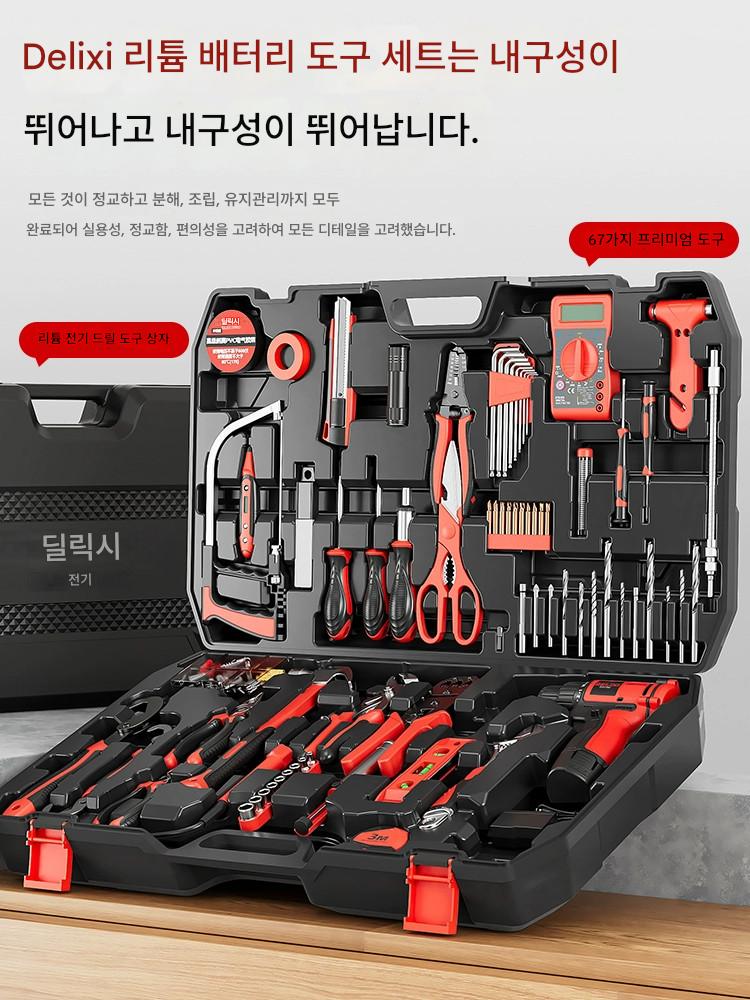 델릭시 도구 상자 가정용 세트 다기능 핸드 드릴 전기 수리 하드웨어 도구 전체 세트