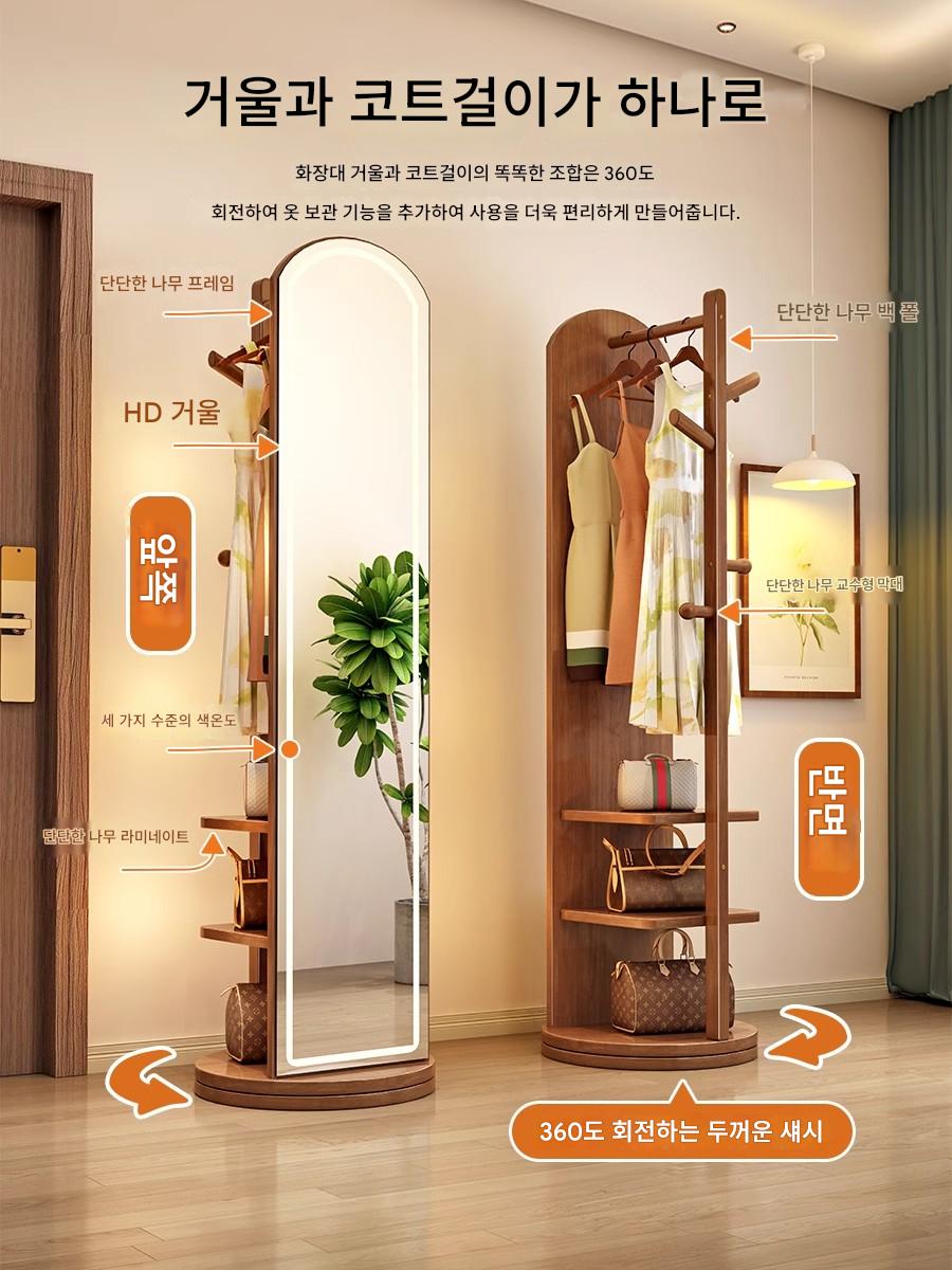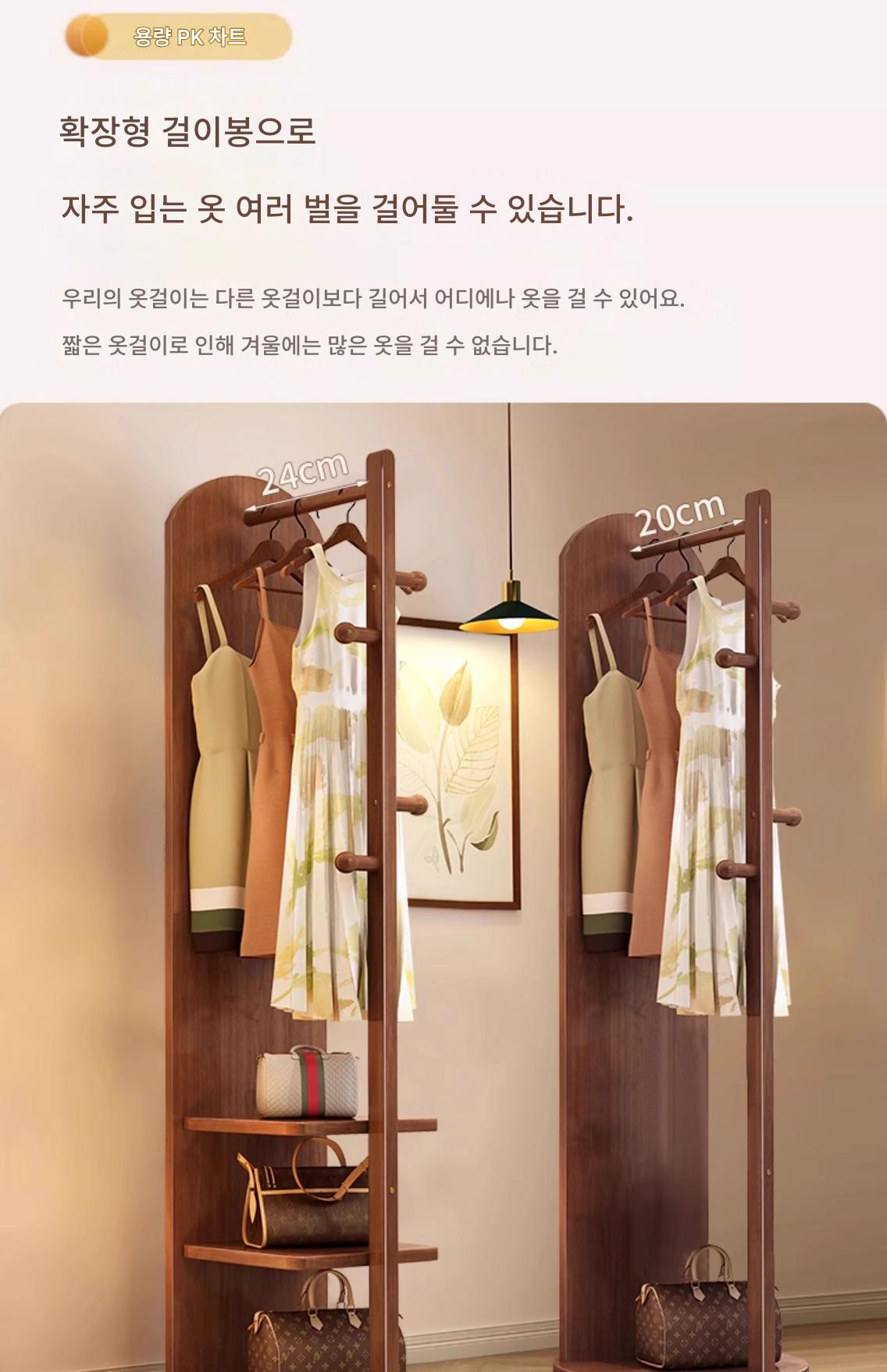 독일박물관 원목 옷걸이 바닥 침실 거실 집 공간 차지 안함 다기능 수납장