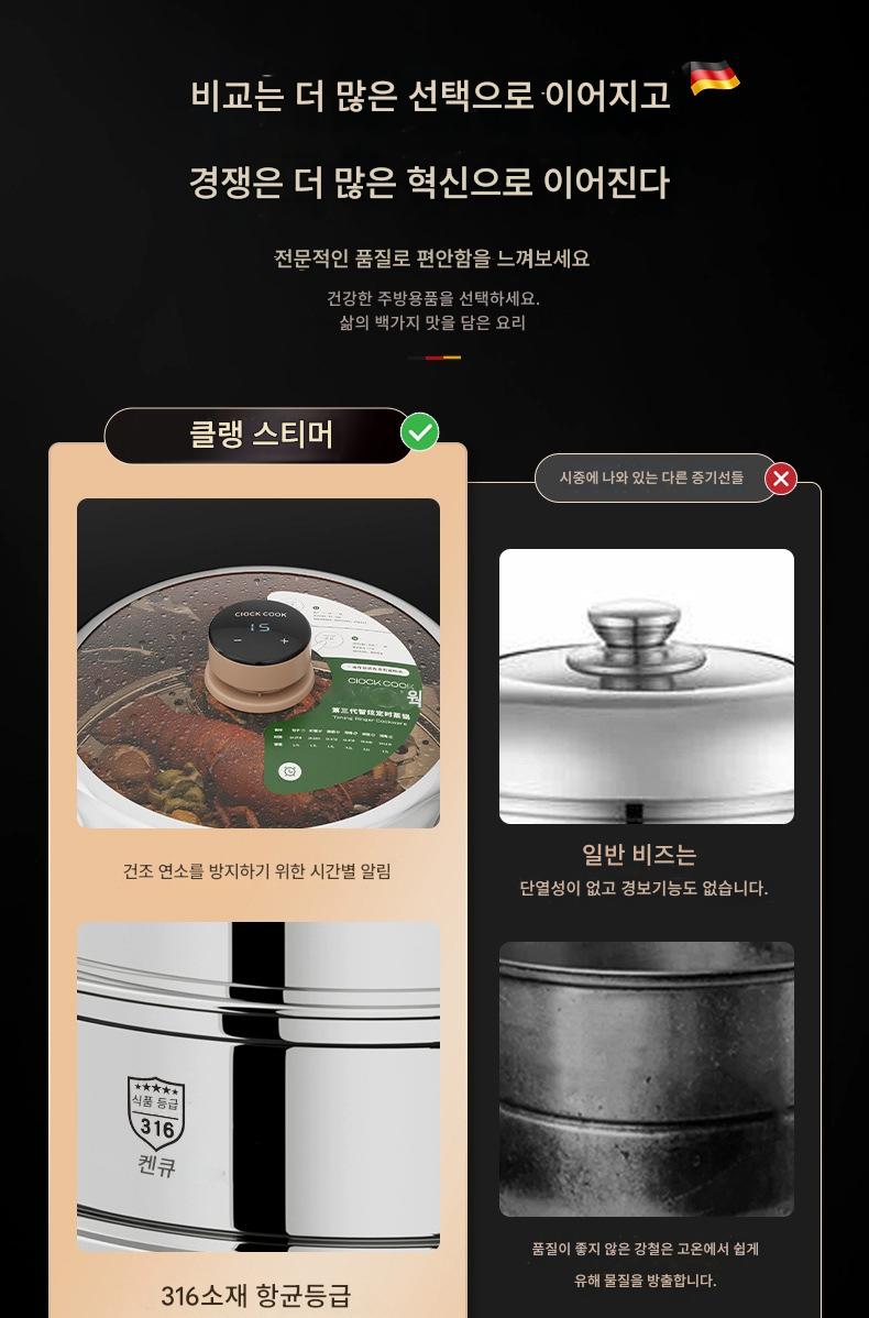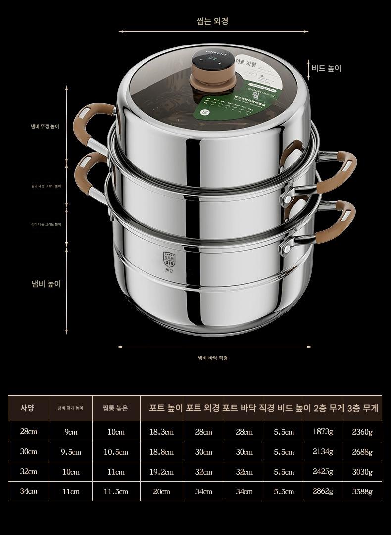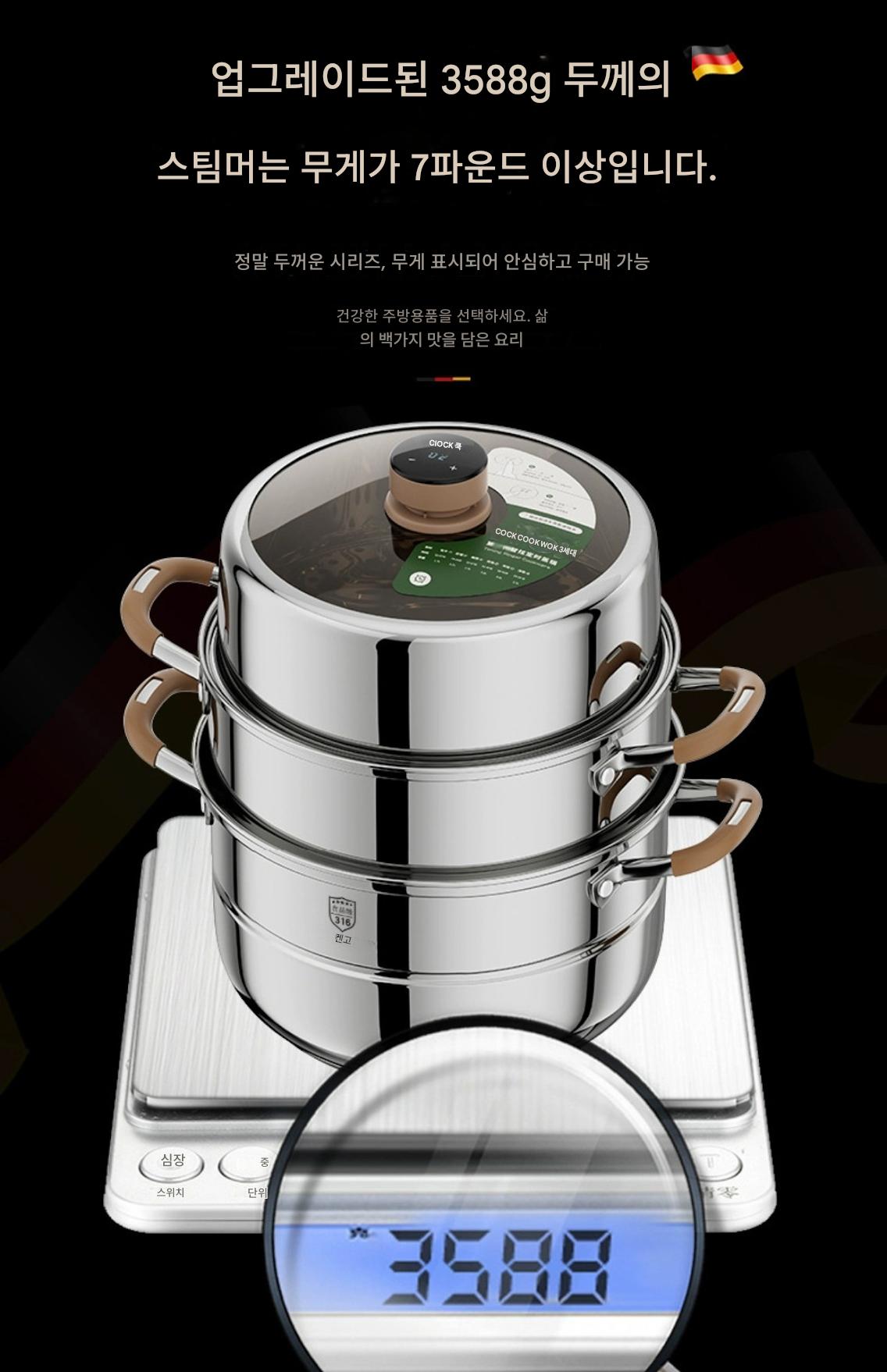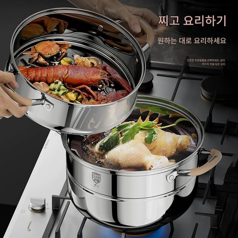 독일산 316 스테인리스 스틸 찜통 식품 등급 타임드 찜통 가정용 농축 찜통 대용량 다층 찜통