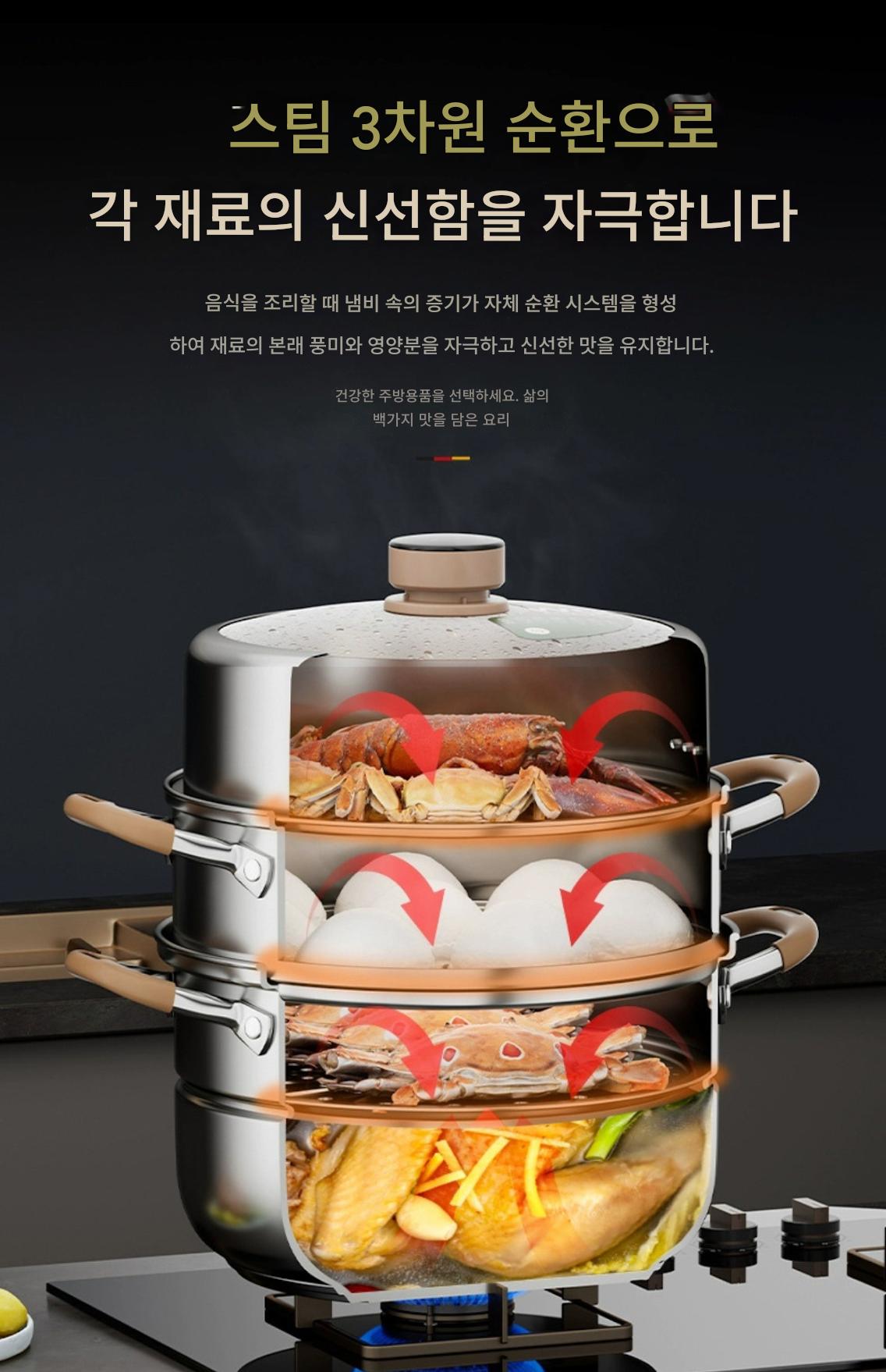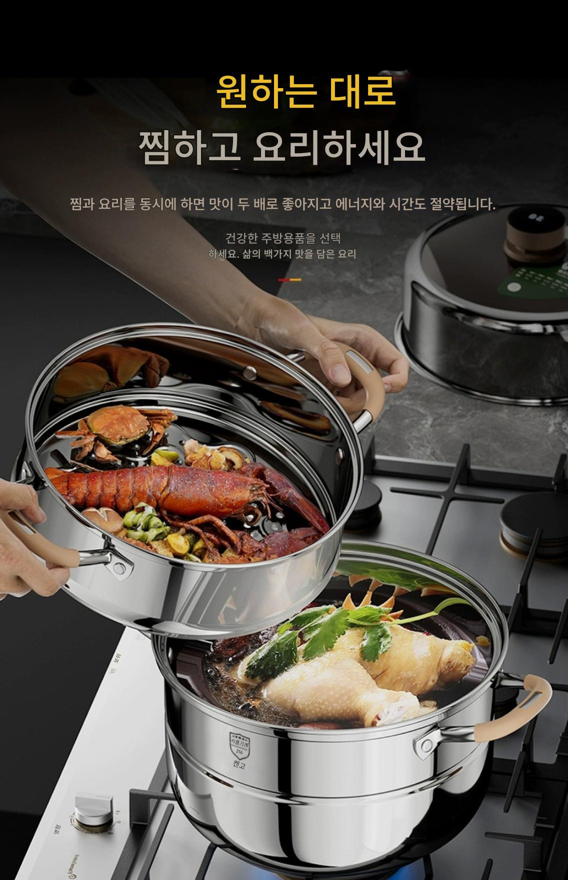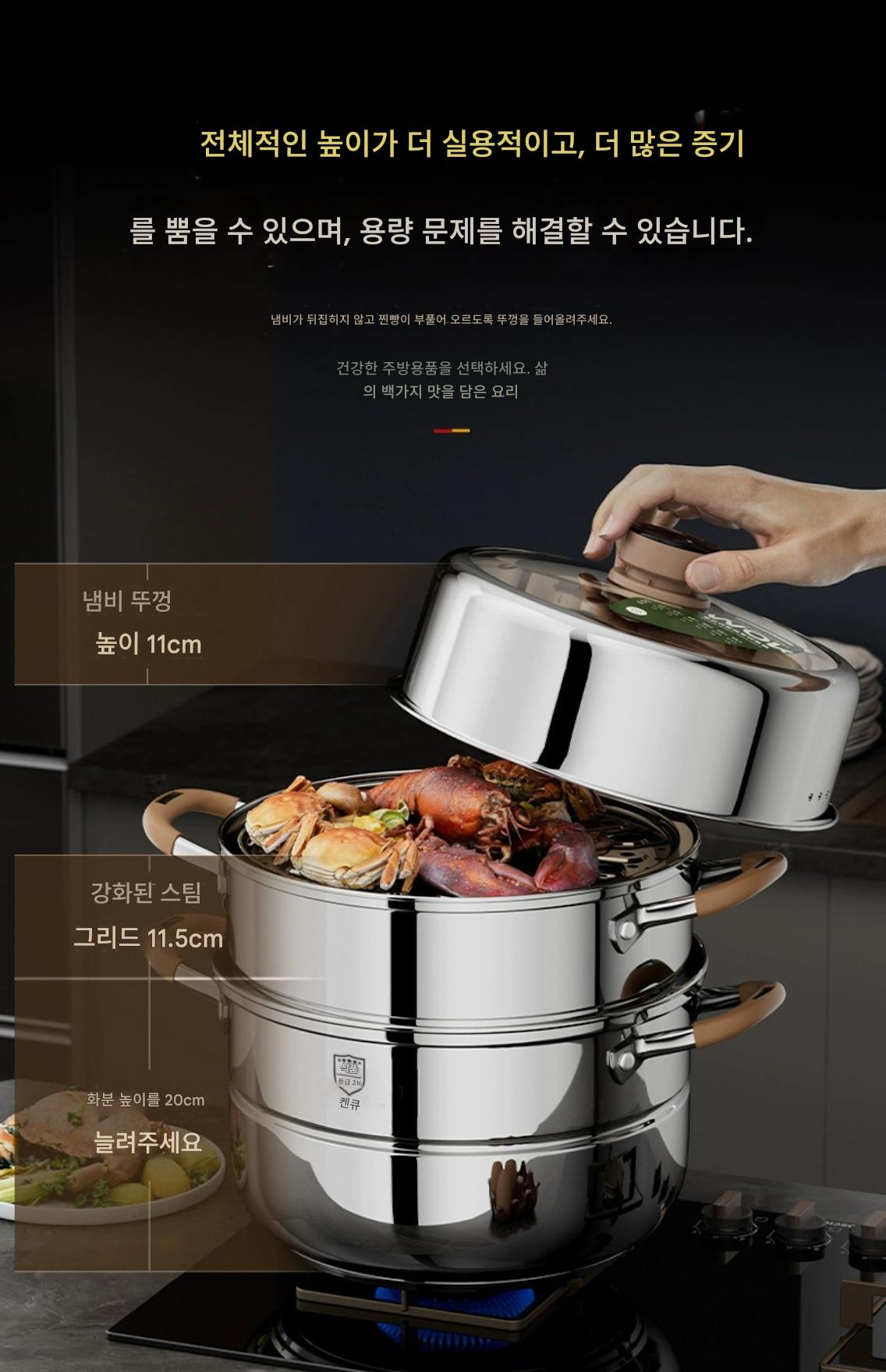 독일산 316 스테인리스 스틸 찜통 식품 등급 타임드 찜통 가정용 농축 찜통 대용량 다층 찜통