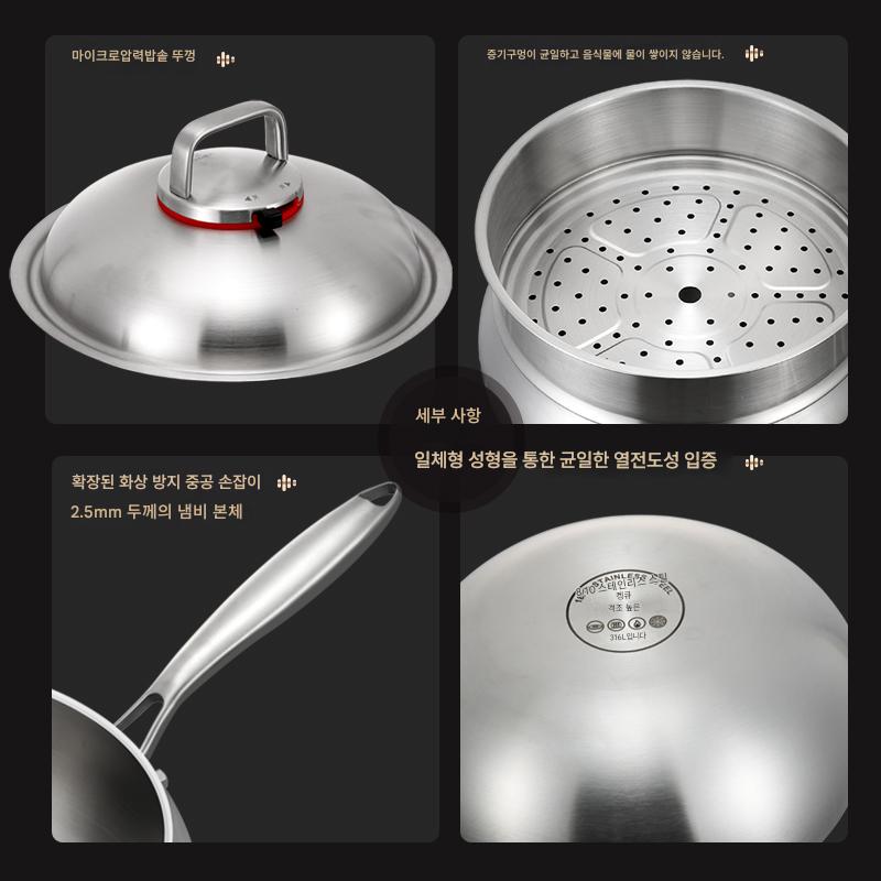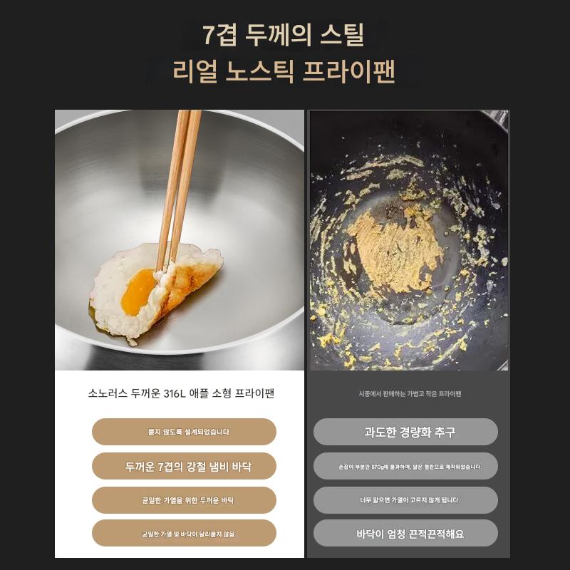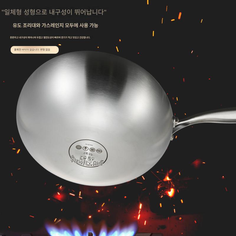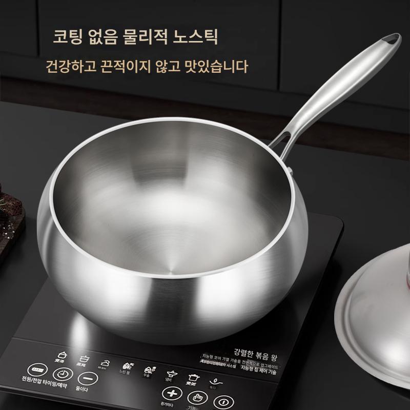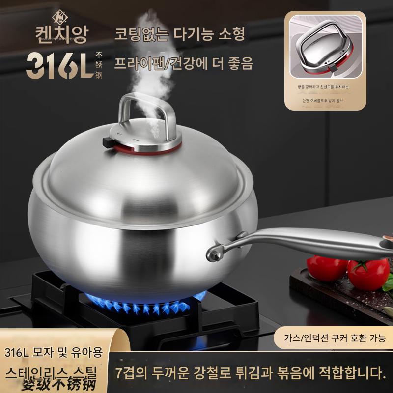 독일산 316 스테인리스 스틸 프라이팬 가정용 유도 조리기 스페셜 빅 벨리 냄비 무코팅 노스틱 프라이팬 1인용