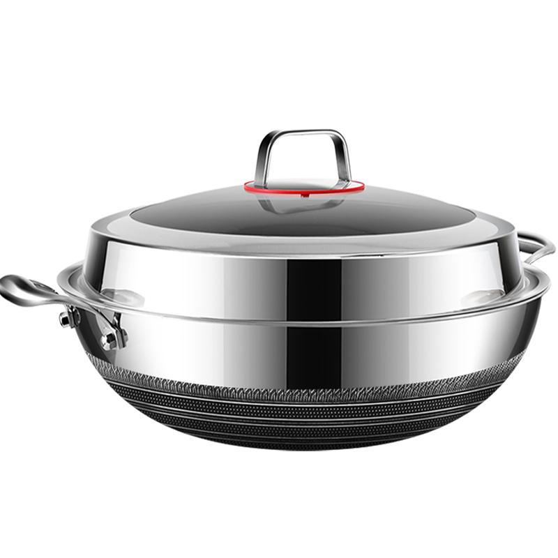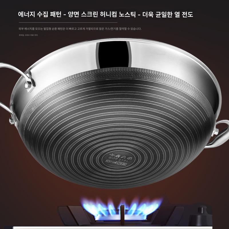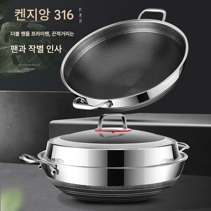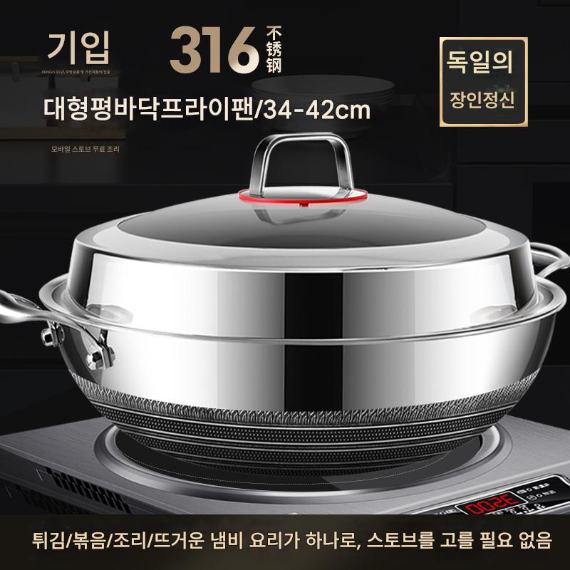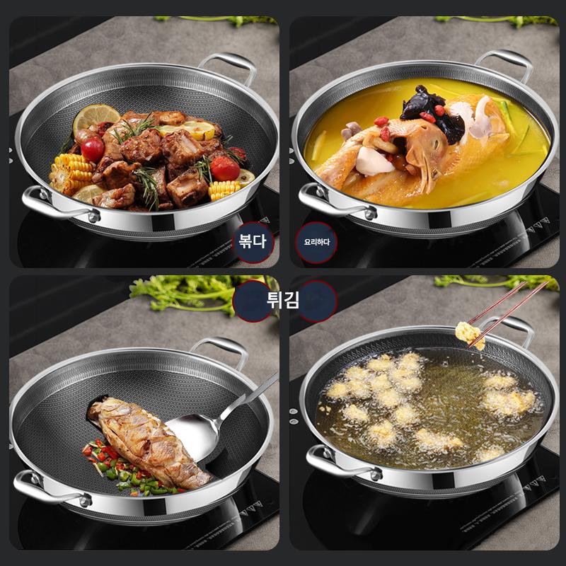 독일산 316 스테인리스 스틸 프라이팬 허니컴 노스틱 팬 더블 이어 플랫 바텀 대형 프라이팬 가정용 가스 인덕션 쿠커