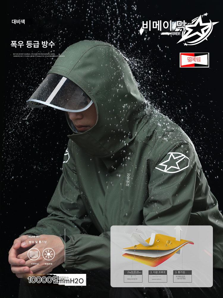 독일제 오토바이 라이딩 레인코트 아우터웨어 롱 전신 방수 스플릿 슈트 배달원용