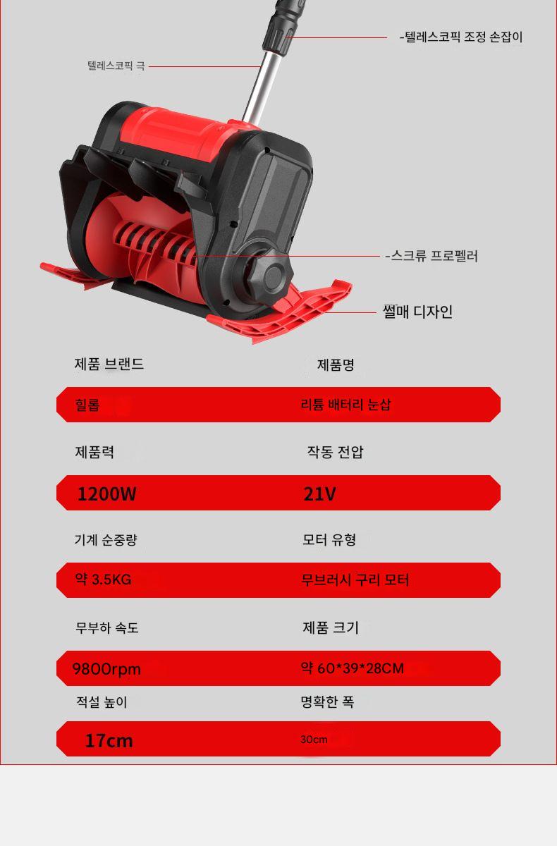독일 수입 리튬 배터리 제설기 고출력 제설기 무선 소형 휴대용 전기 제설기