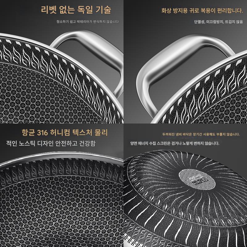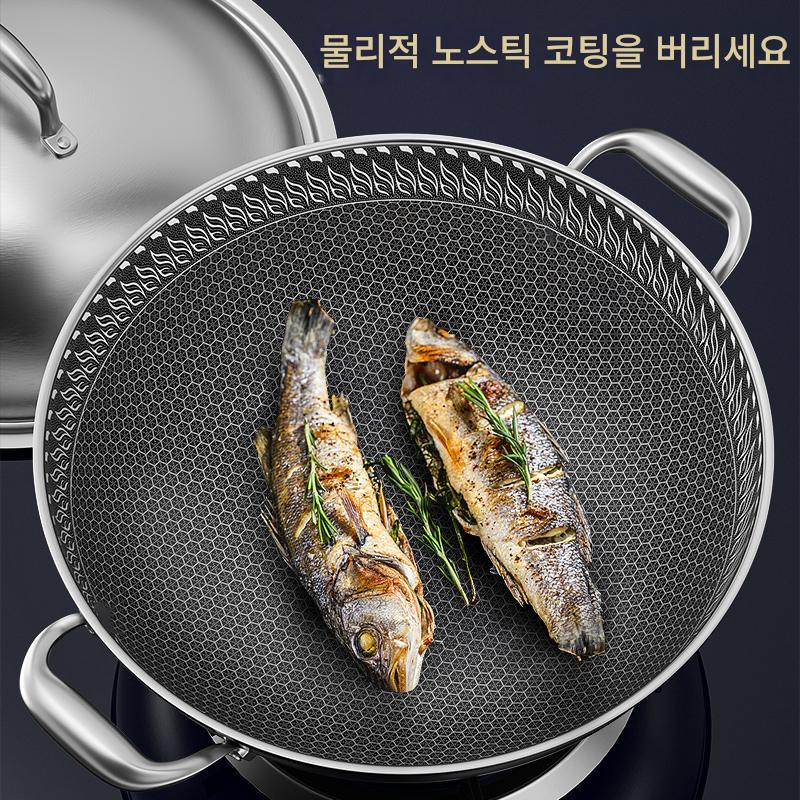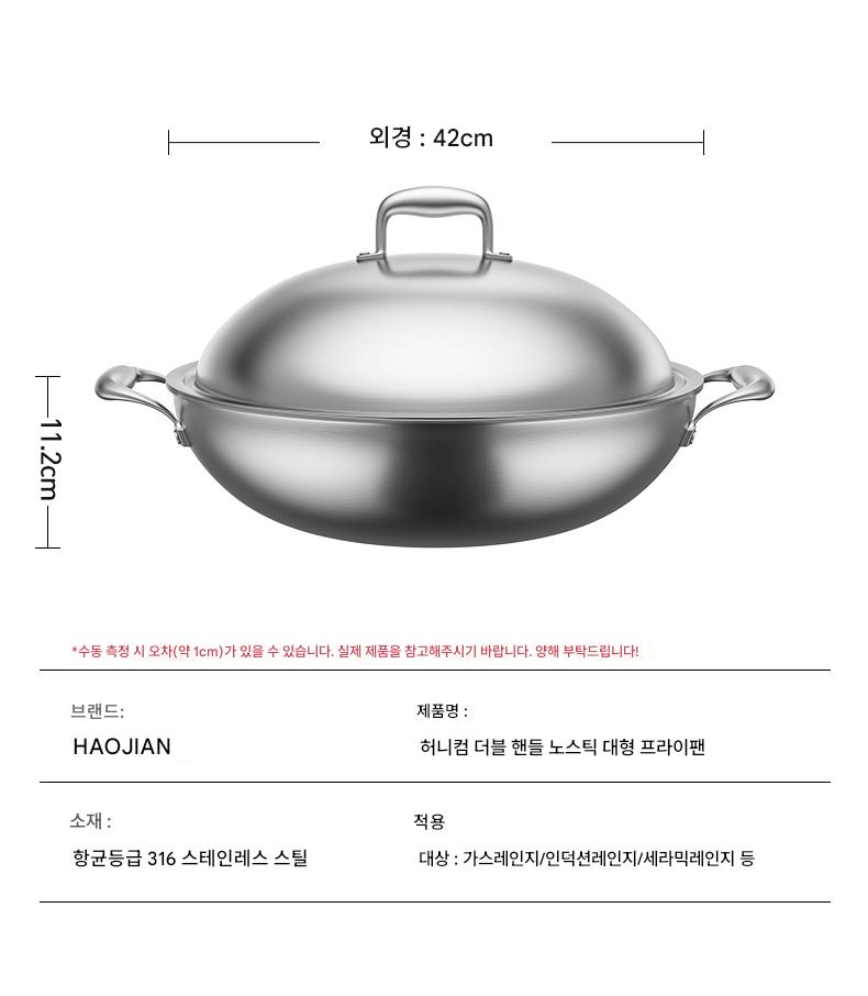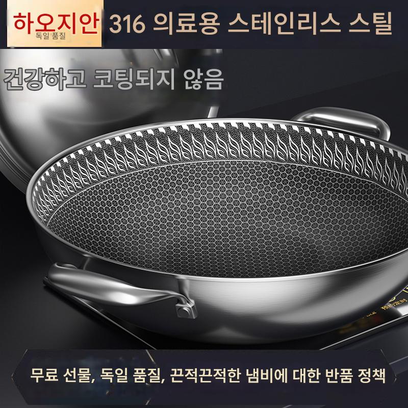 “독일 수출 316 스테인레스 스틸 더블 이어 대형 프라이팬 노스틱 팬 둥근 바닥 팬 핫팟 가스 오목 전자기파”의 첫 상품평을 남겨 주세요