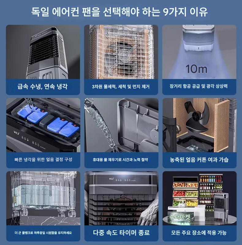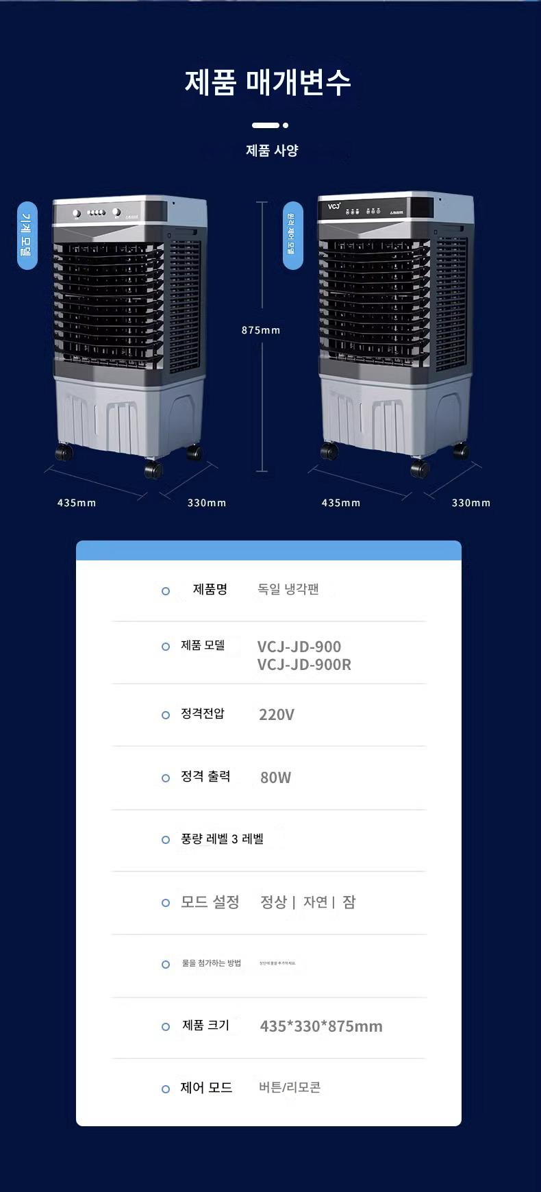 독일 에어컨 팬 냉각 팬 가정용 단일 냉각 유형 수냉식 기계 쿨러 모바일 소형 에어컨 팬