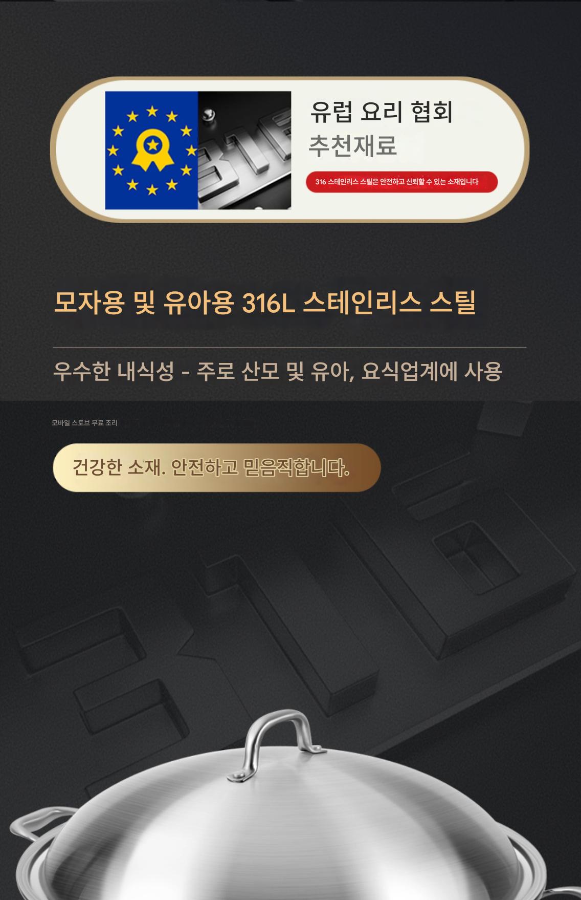 독일 정품 노스틱 팬 316l 스테인레스 스틸 프라이팬 둥근 바닥 팬 무코팅 전자기 대형 더블 귀 프라이팬