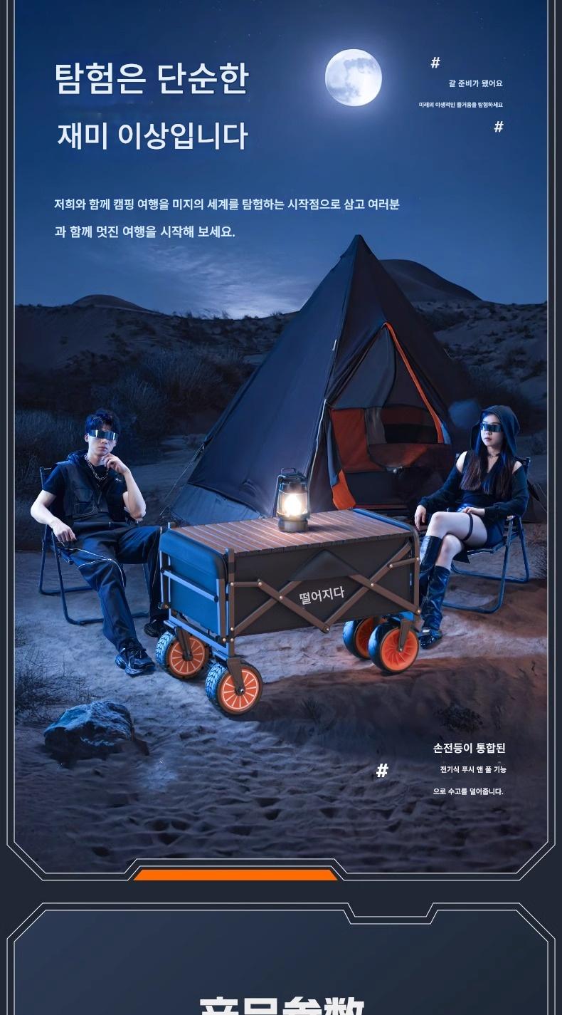 “독일 정품 2025년 신형 전기 캠핑카 푸시 어시스트 야외 캠핑 피크닉 캠핑 접이식 카트”의 첫 상품평을 남겨 주세요