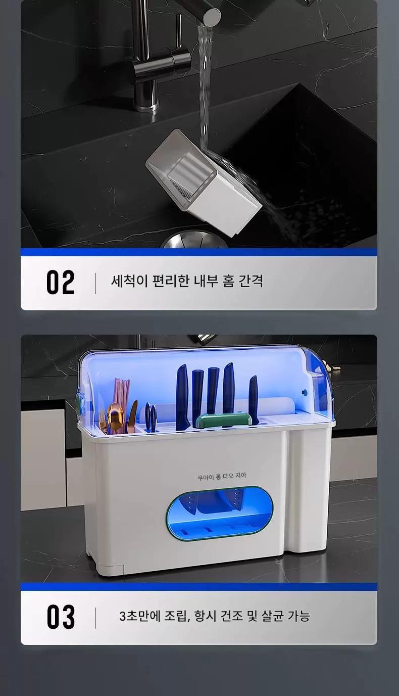 독일 주방 칼꽂이 젓가락 칼붙이 도마 통합 살균 건조 칼꽂이 보관함 다기능