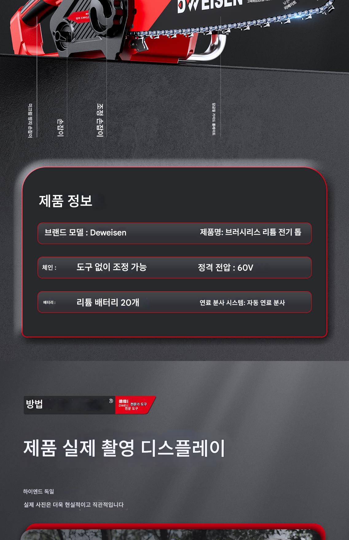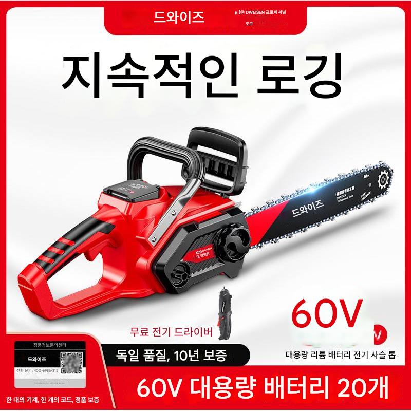 독일 충전식 리튬 사슬톱 60V 리튬 배터리 고출력 대용량 가정용 핸드헬드 전기 사슬톱 벌목톱