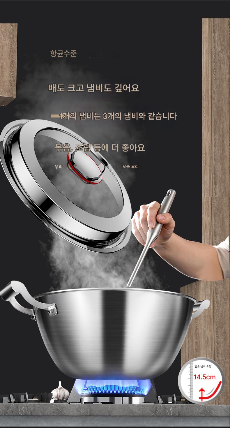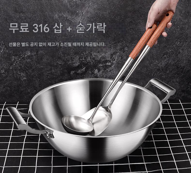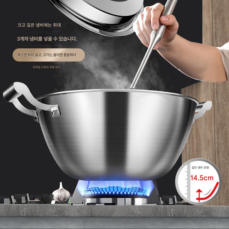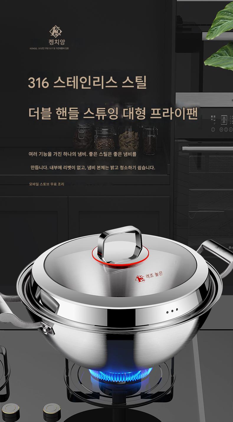 독일 프라이팬 316 스테인리스 스틸 가정용 무코팅 노스틱 팬 유도 쿠커 유니버셜 더블 이어 디펜 대형 프라이팬