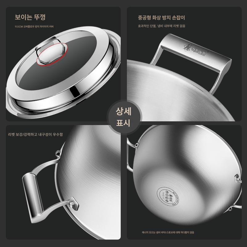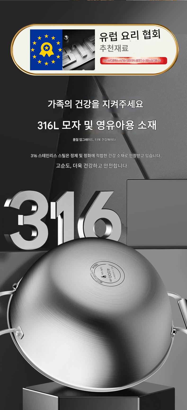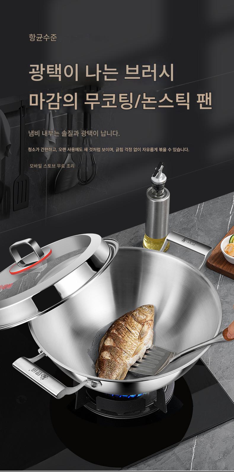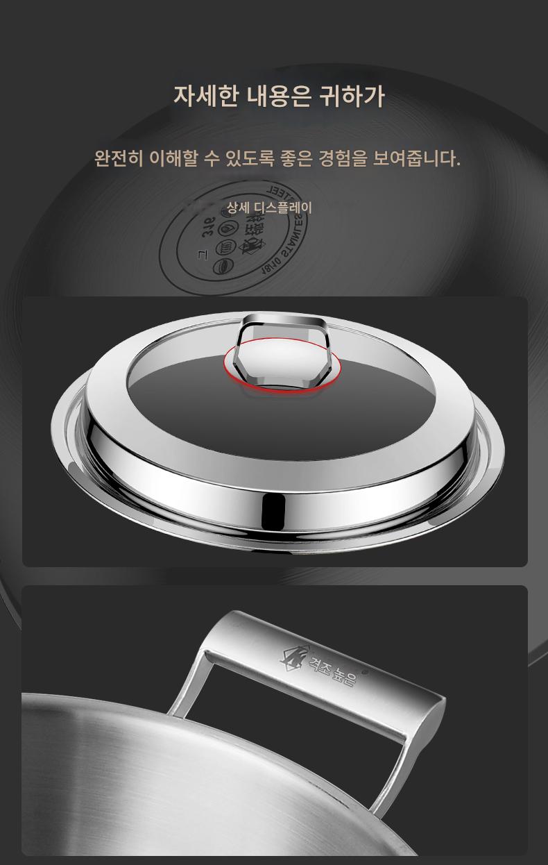 독일 프라이팬 316 스테인리스 스틸 가정용 무코팅 노스틱 팬 유도 쿠커 유니버셜 더블 이어 디펜 대형 프라이팬