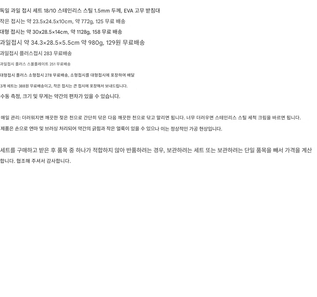 독일 INOX 과일 접시 세트 18/10 스테인리스 스틸 닦은 유럽 스타일 심플한 스타일 이사 선물 개인용