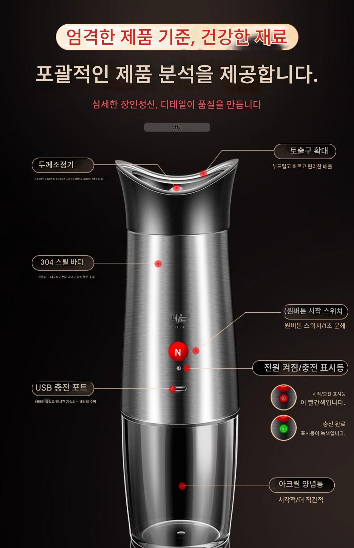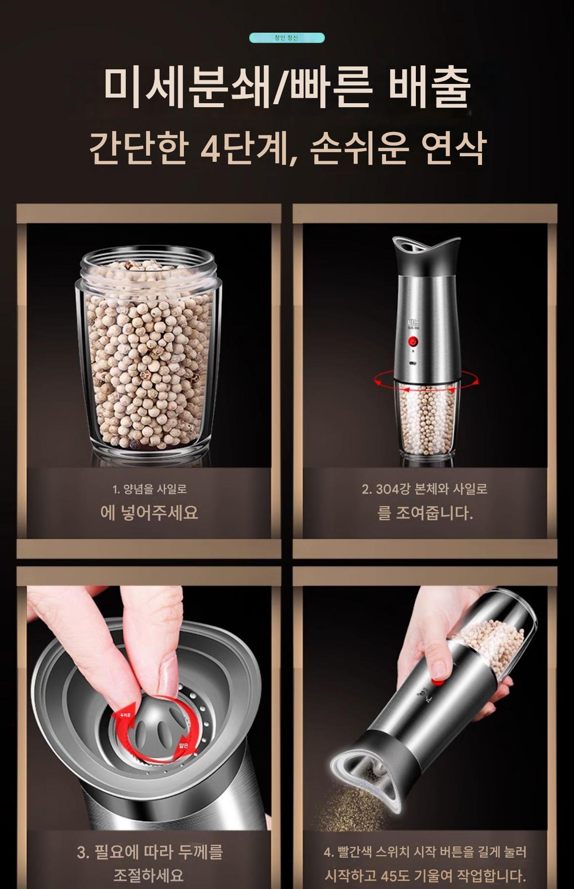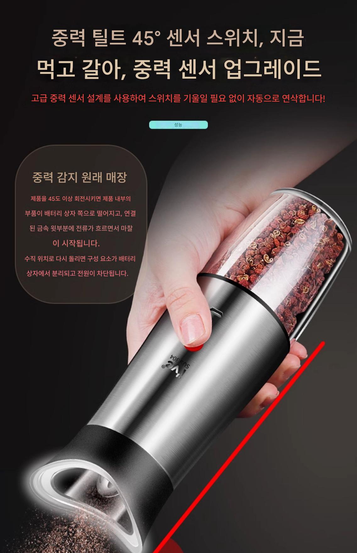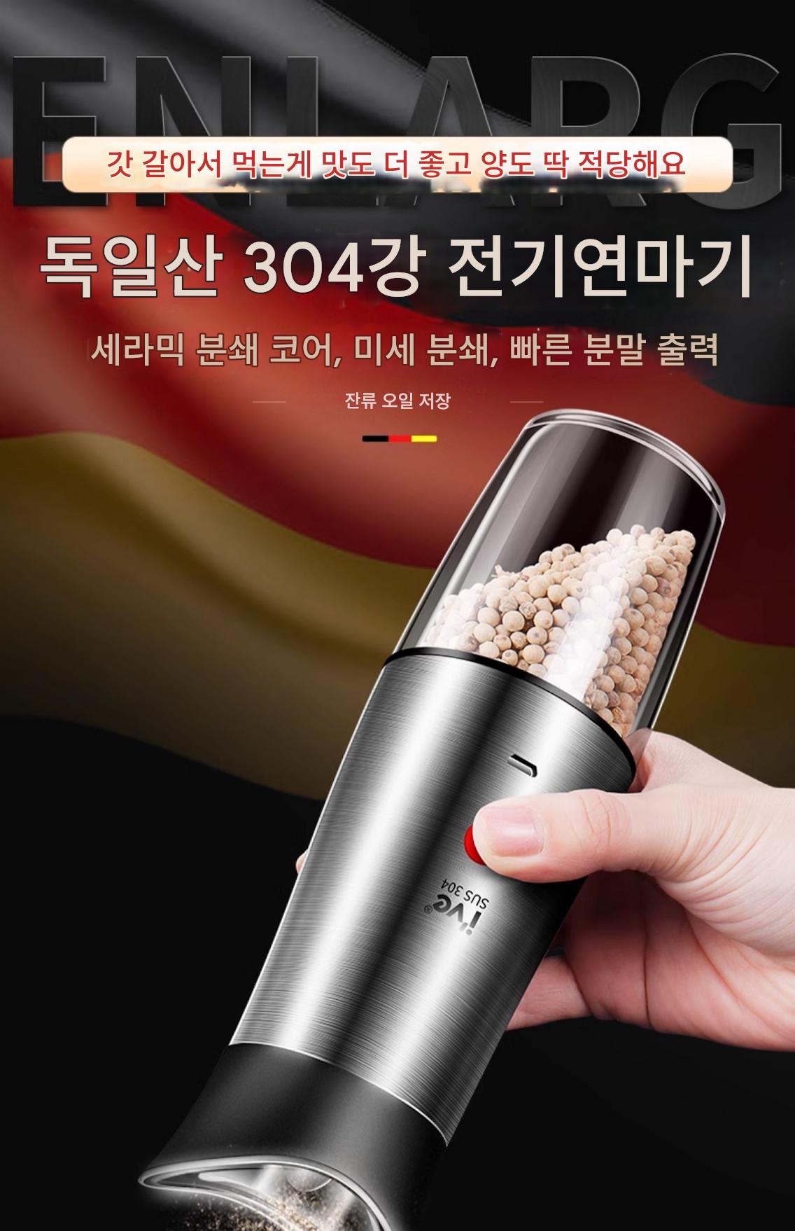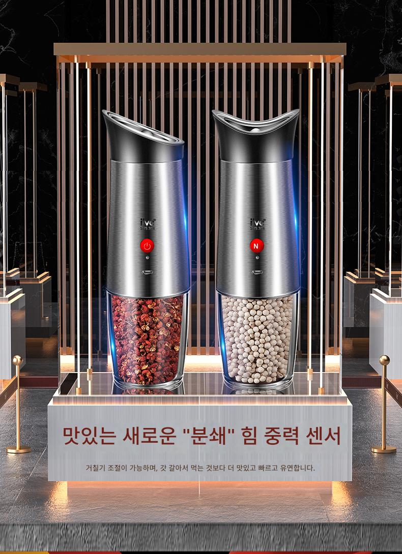 독일 ive 전기 후추 분쇄기 스테인리스 스틸 가정용 바다 소금 후추 가루 자동 분쇄 병 검은 후추 알갱이