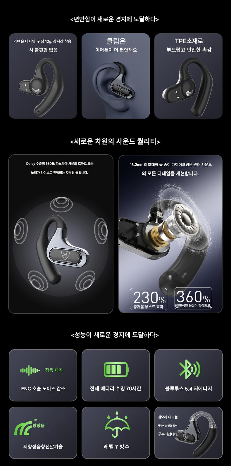 독일 SENGIRNY Berlin Voice 블루투스 헤드폰 이어후크 에어 본전도 오픈형 인이어 스포츠 러닝