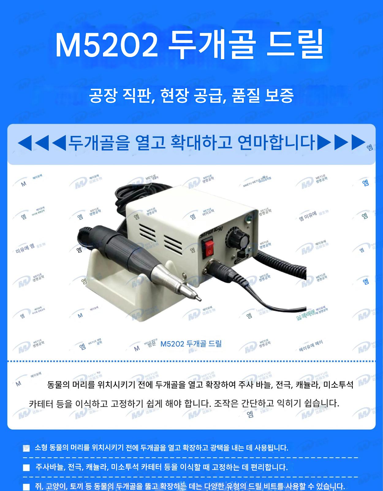 두개골 드릴 홀더, 두개골 드릴, 뇌 입체 조정 기구, 두개골 드릴 V자형 클램프, 두개골 드릴링, 두개골 개방