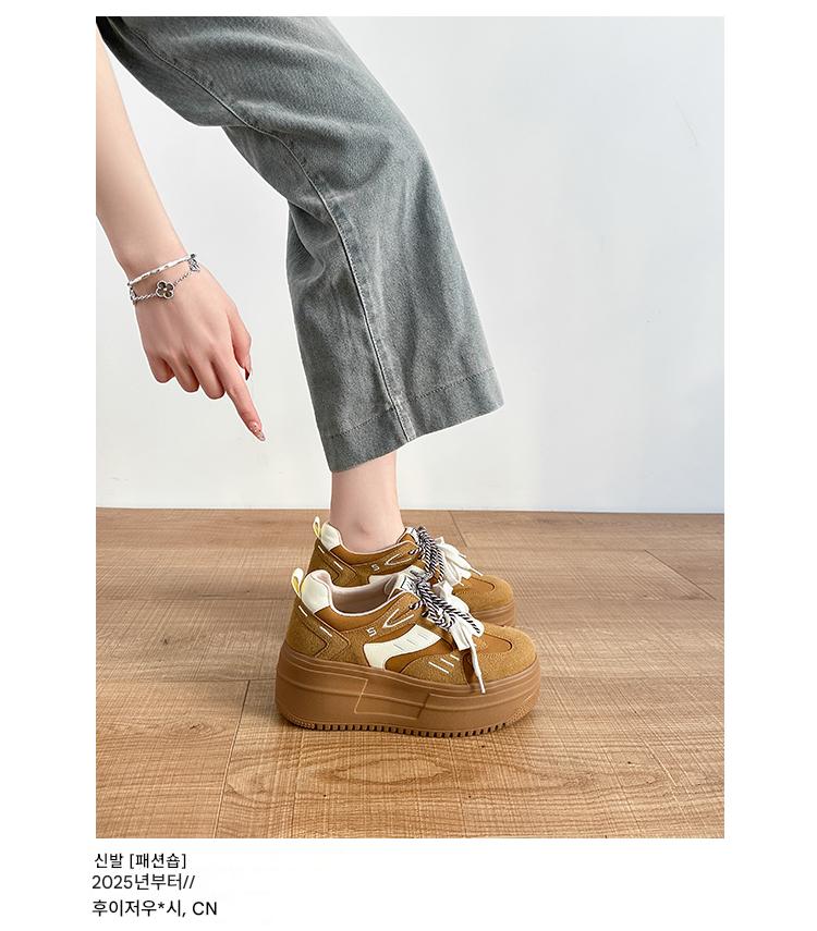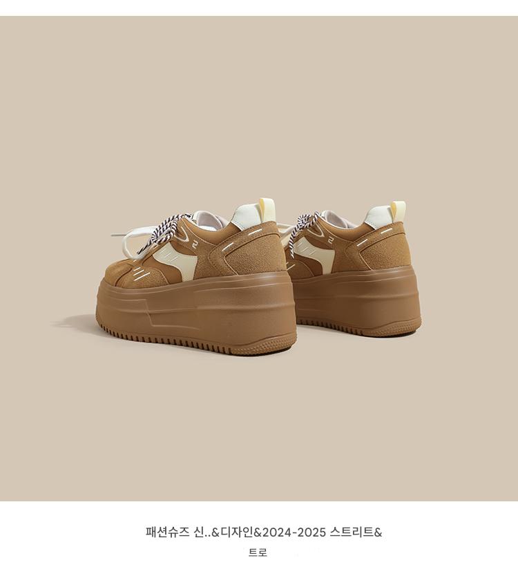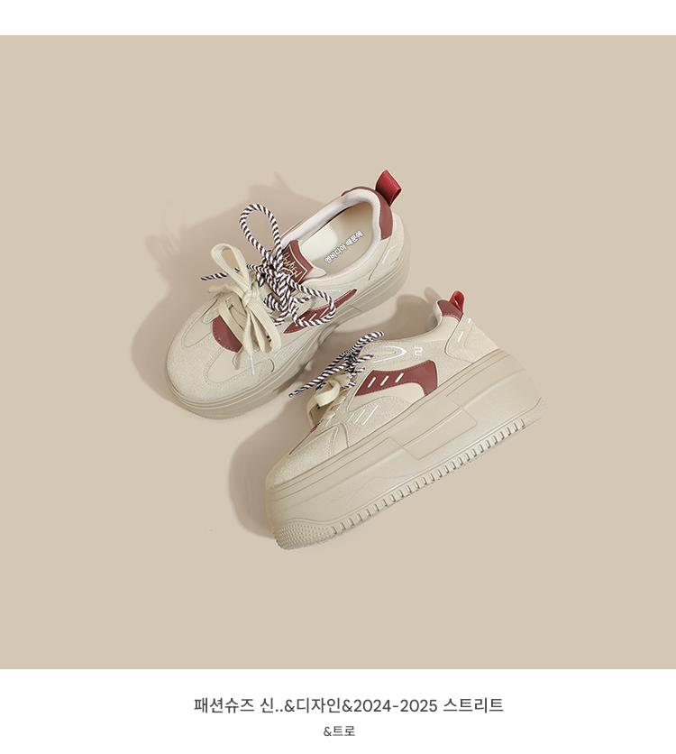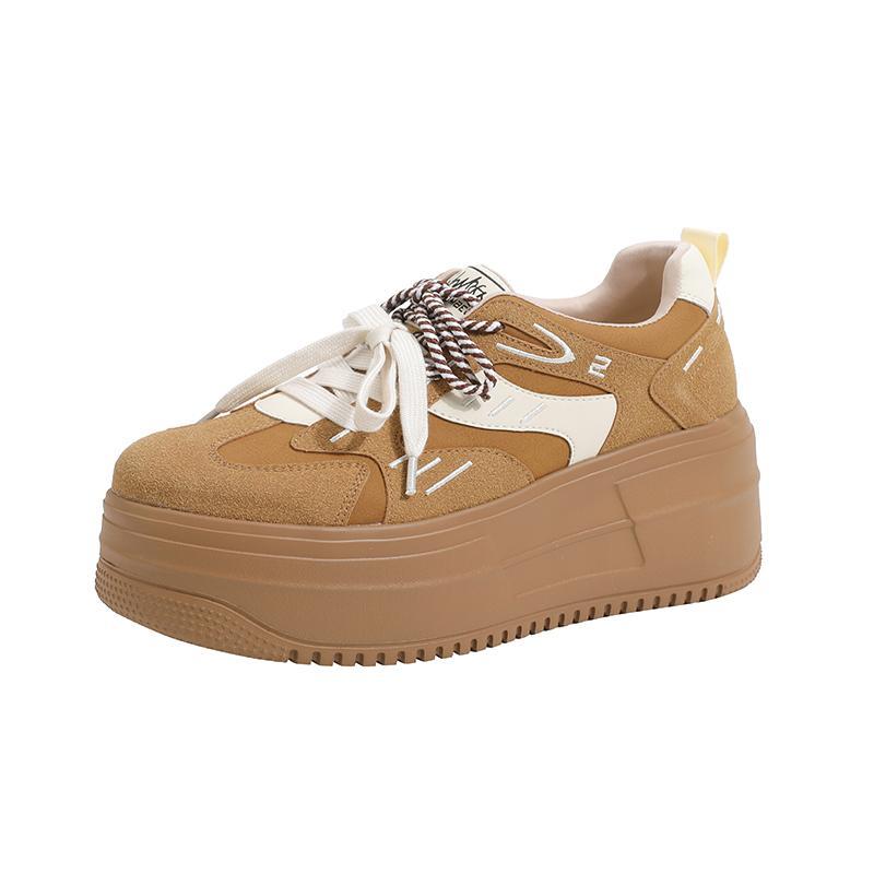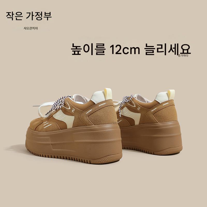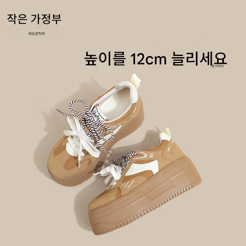 두꺼운 밑창 키높이 아빠화 여성용 2025년 봄 신상품 레트로 브라운 스포츠화 캐주얼 올매치 보드화