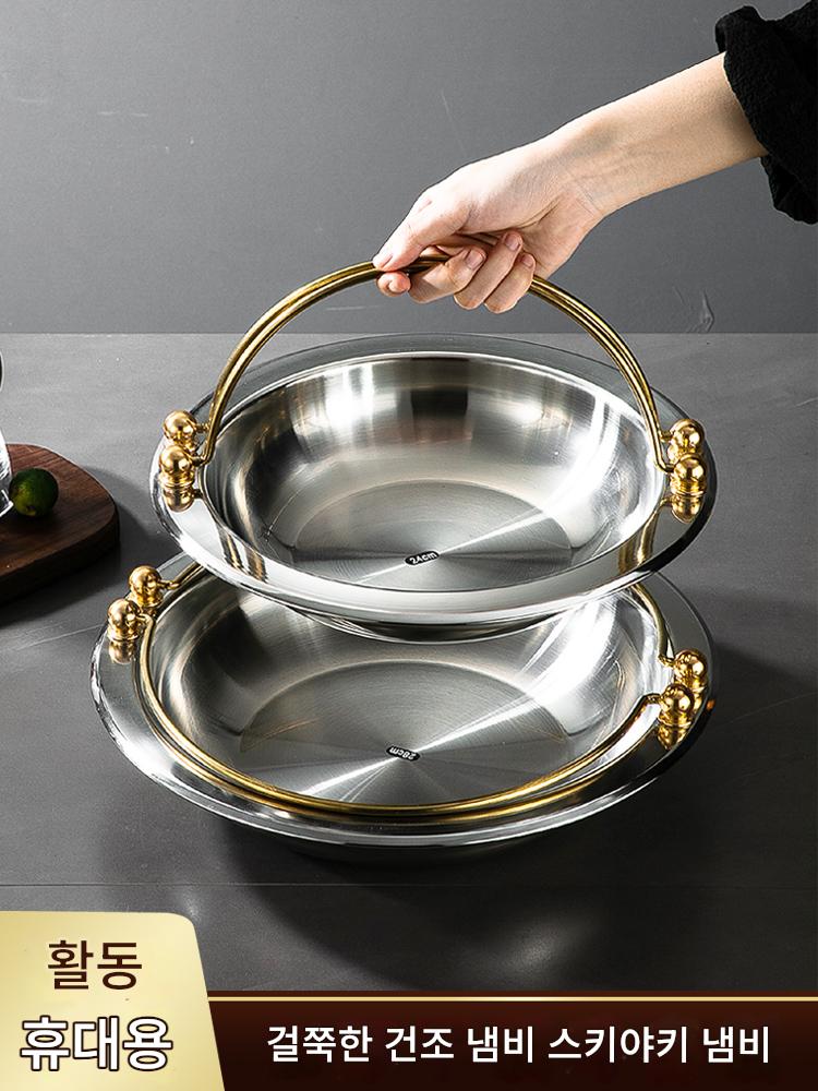 두꺼운 스키야키 냄비 상업용 냄비 레스토랑 전용 신형 평저 휴대용 건조 냄비 가정용 스테인리스 스틸 통합 핫팟