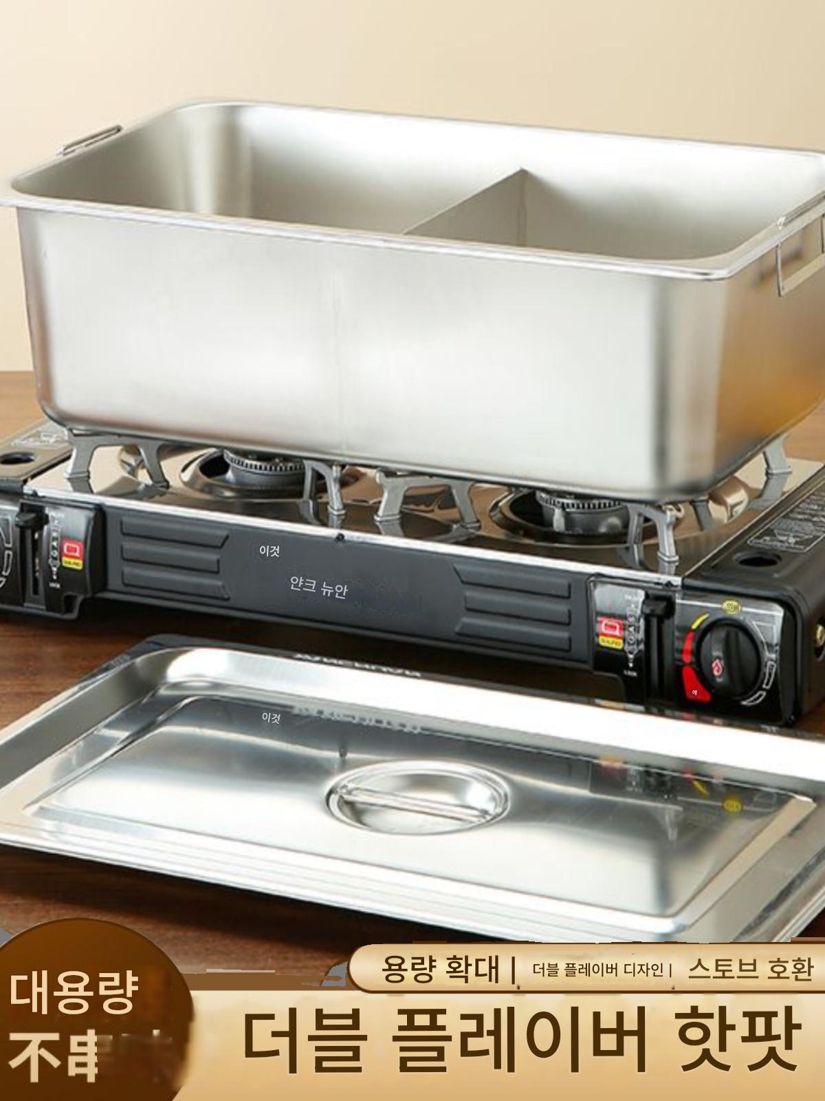 두꺼워진 스테인리스 스틸 더블 그리드 만다린 오리 냄비 상업용 프라이팬 가정용 일체형 핫팟 냄비 더블 그리드 뷔페 냄비