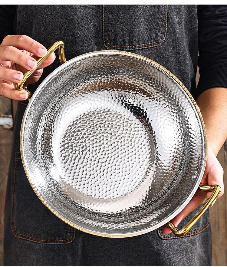두꺼워진 304 스테인리스 스틸 망치무늬 절임 생선 특수 냄비 상업용 소스 해산물 삶은 생선 분지 3층 스틸 핫팟