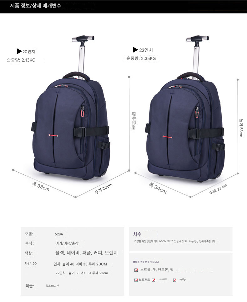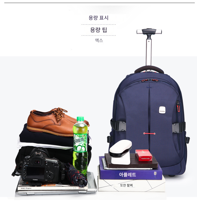 뒤로 운반 및 당길 수 있는 다기능 트롤리 백 비즈니스 러기지 백 옥스포드 천 방수 여행 가방 다중 포켓 컴퓨터 백